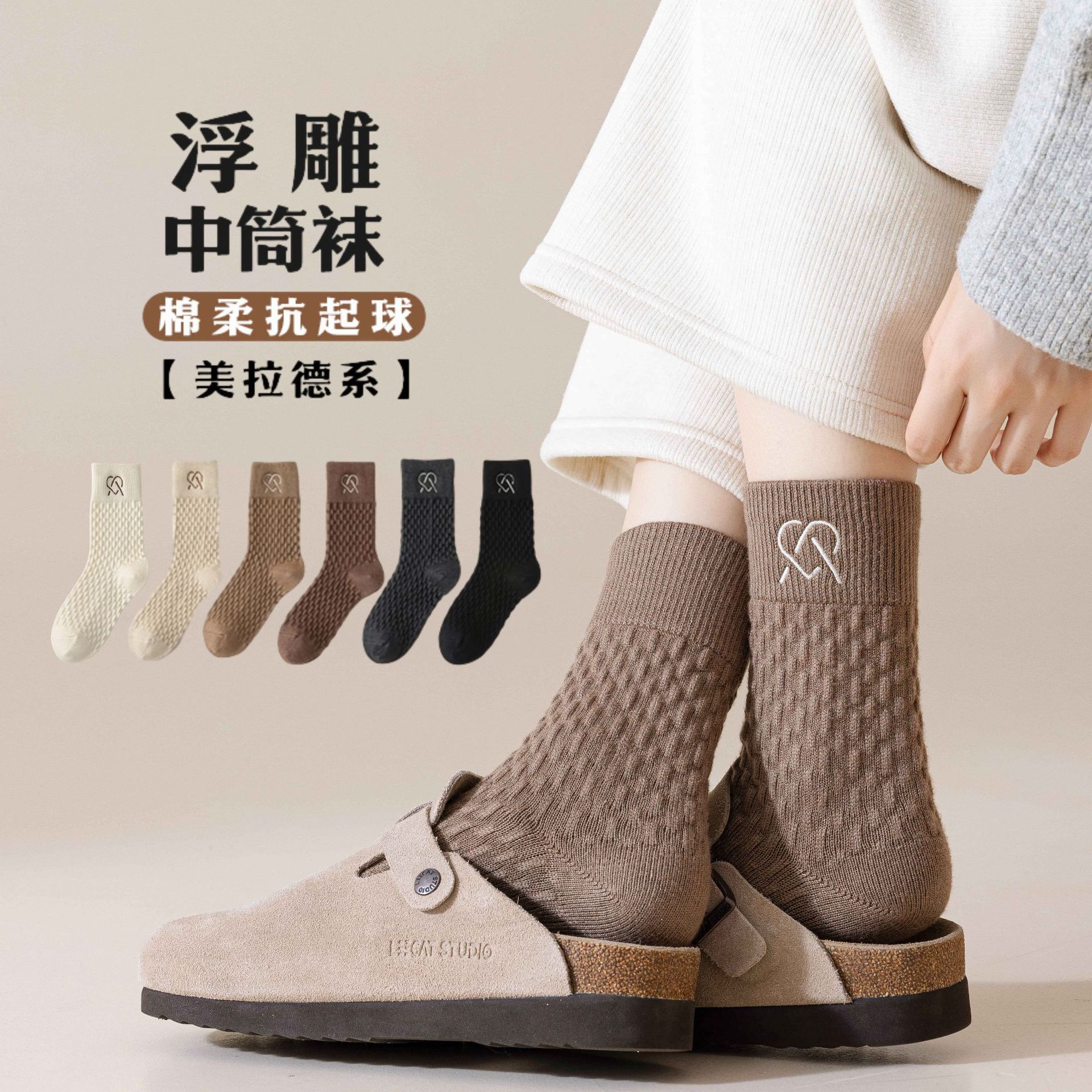 女性用靴下、春夏無地ミッドチューブコットンソックス、毛玉防止、ルーズエッジ、産後ソックス、女の子用多用途パイルソックス