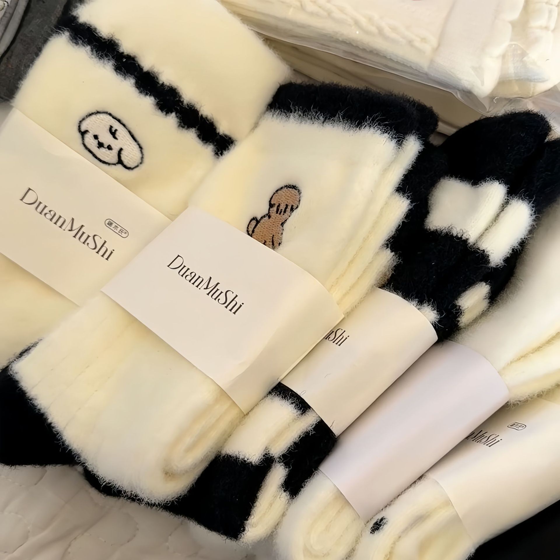 柔らかいモチ熊刺繍中筒靴下秋冬アニメかわいい女性靴下厚い山高弾中筒女性靴下