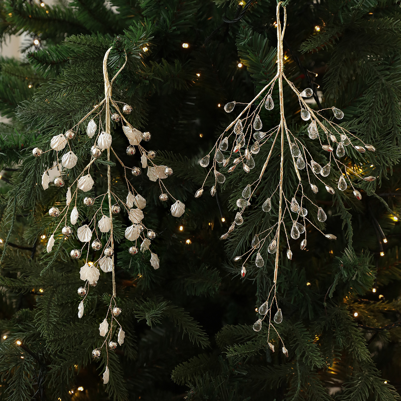 新品圣诞树插枝水晶水滴粘粉贝壳珍珠铁艺高档装饰粘粉珠串插花