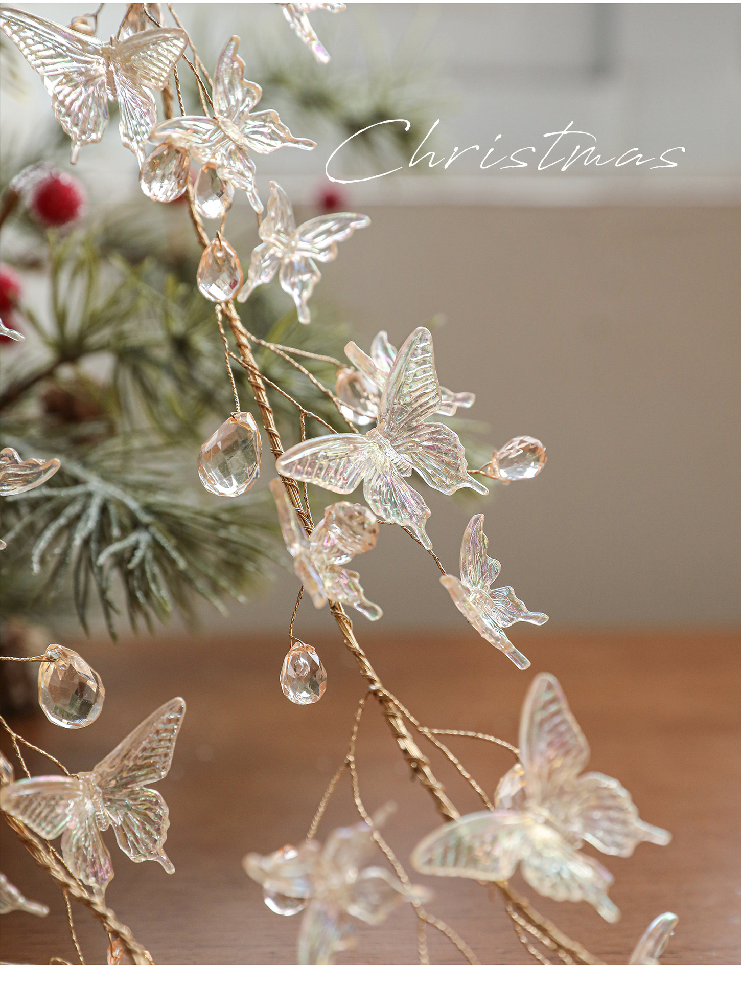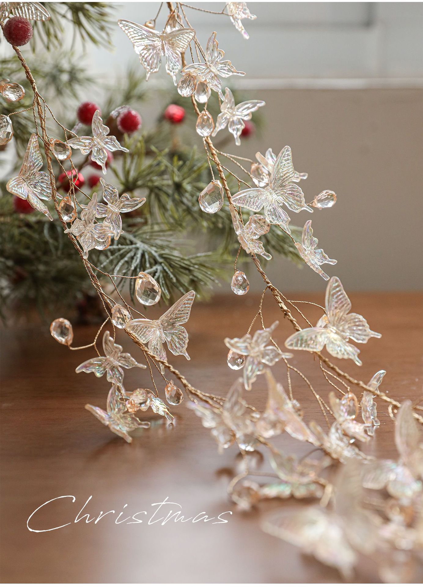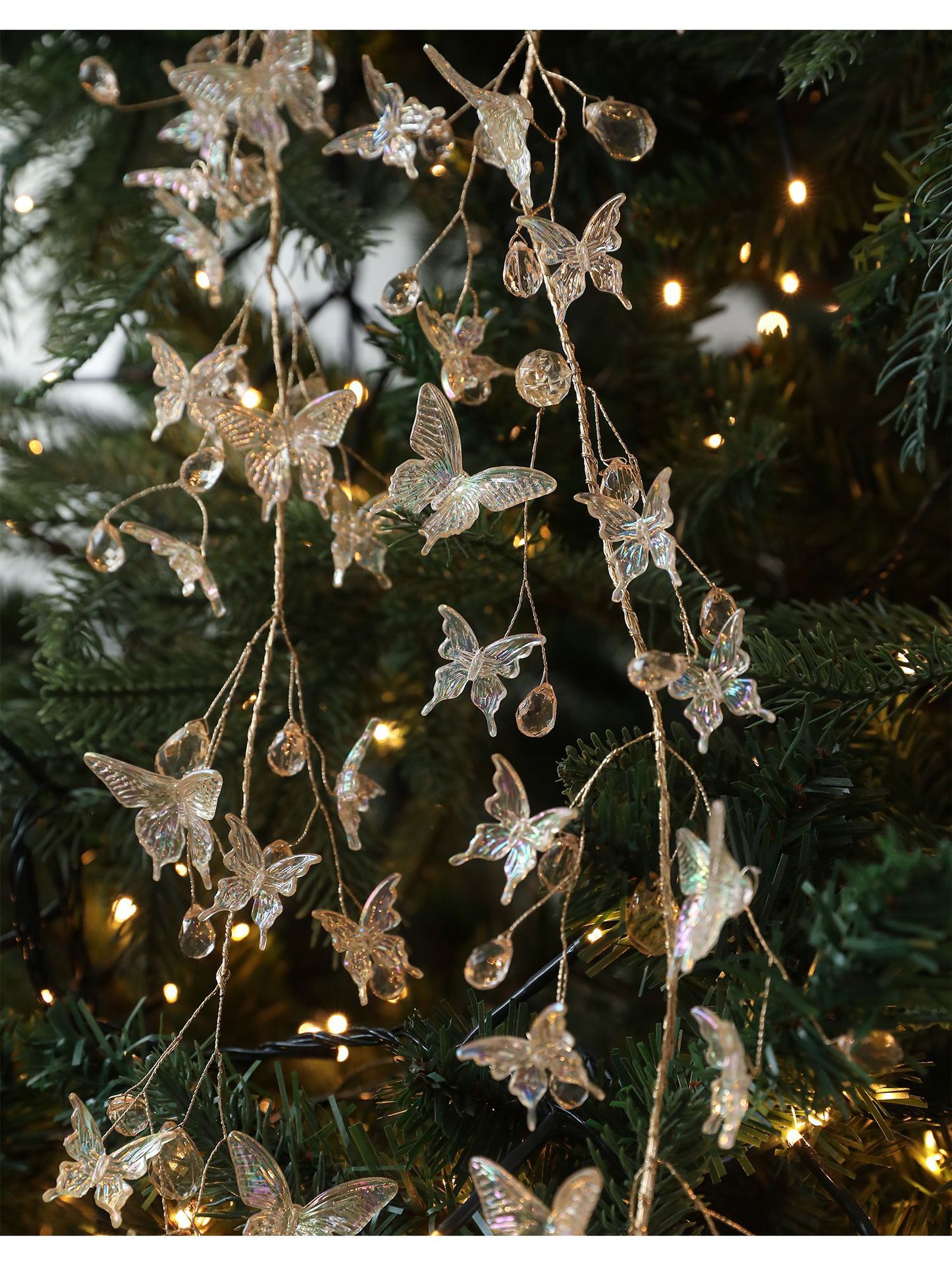 新款圣诞水晶链串透明炫彩蝴蝶珍珠珠串挂件圣诞树花环藤条装饰