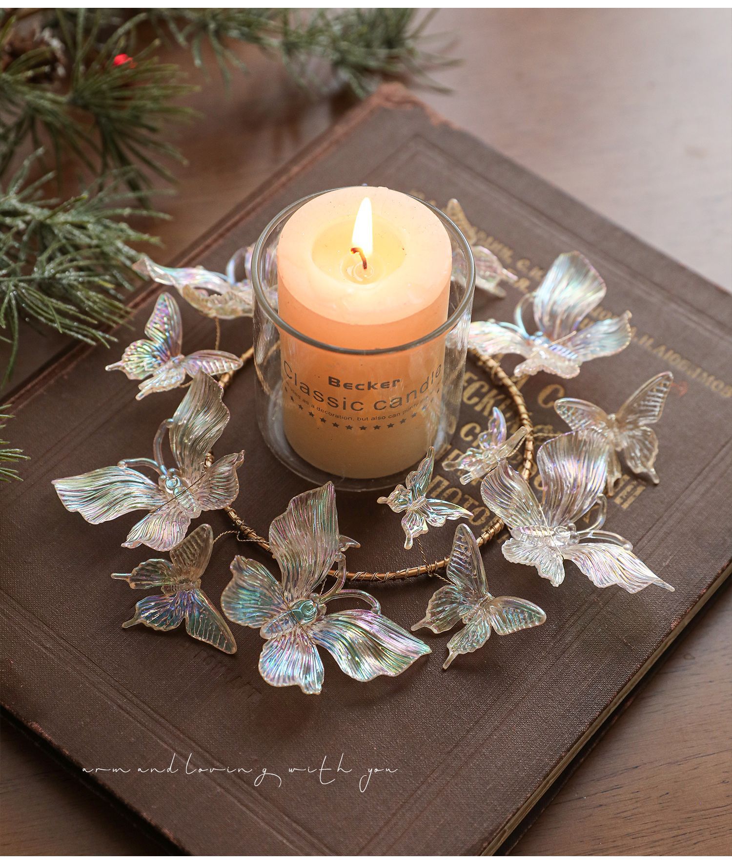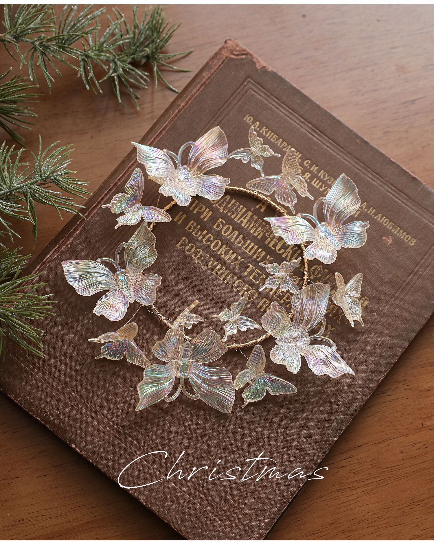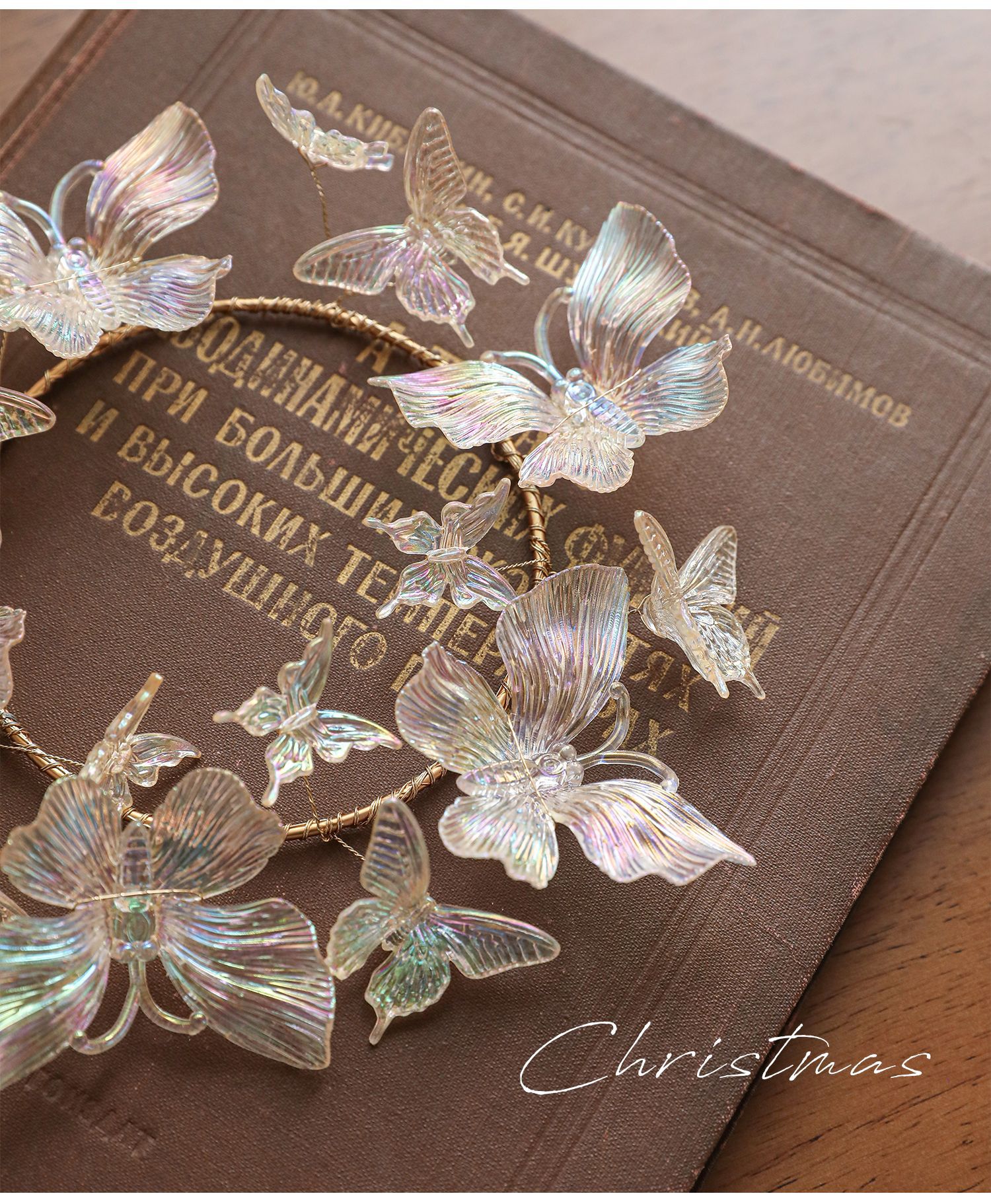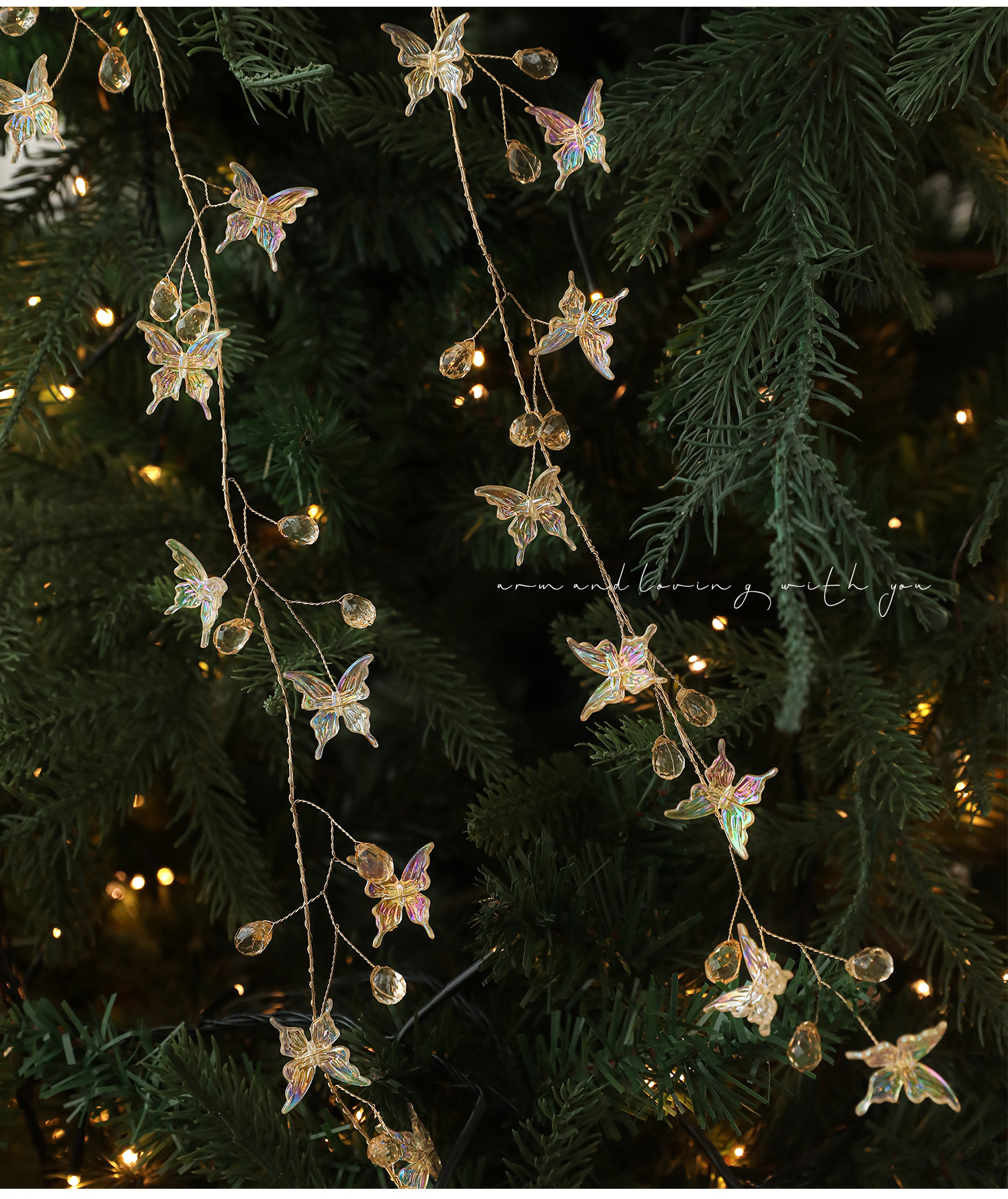 新款圣诞水晶链串透明炫彩蝴蝶珍珠珠串挂件圣诞树花环藤条装饰