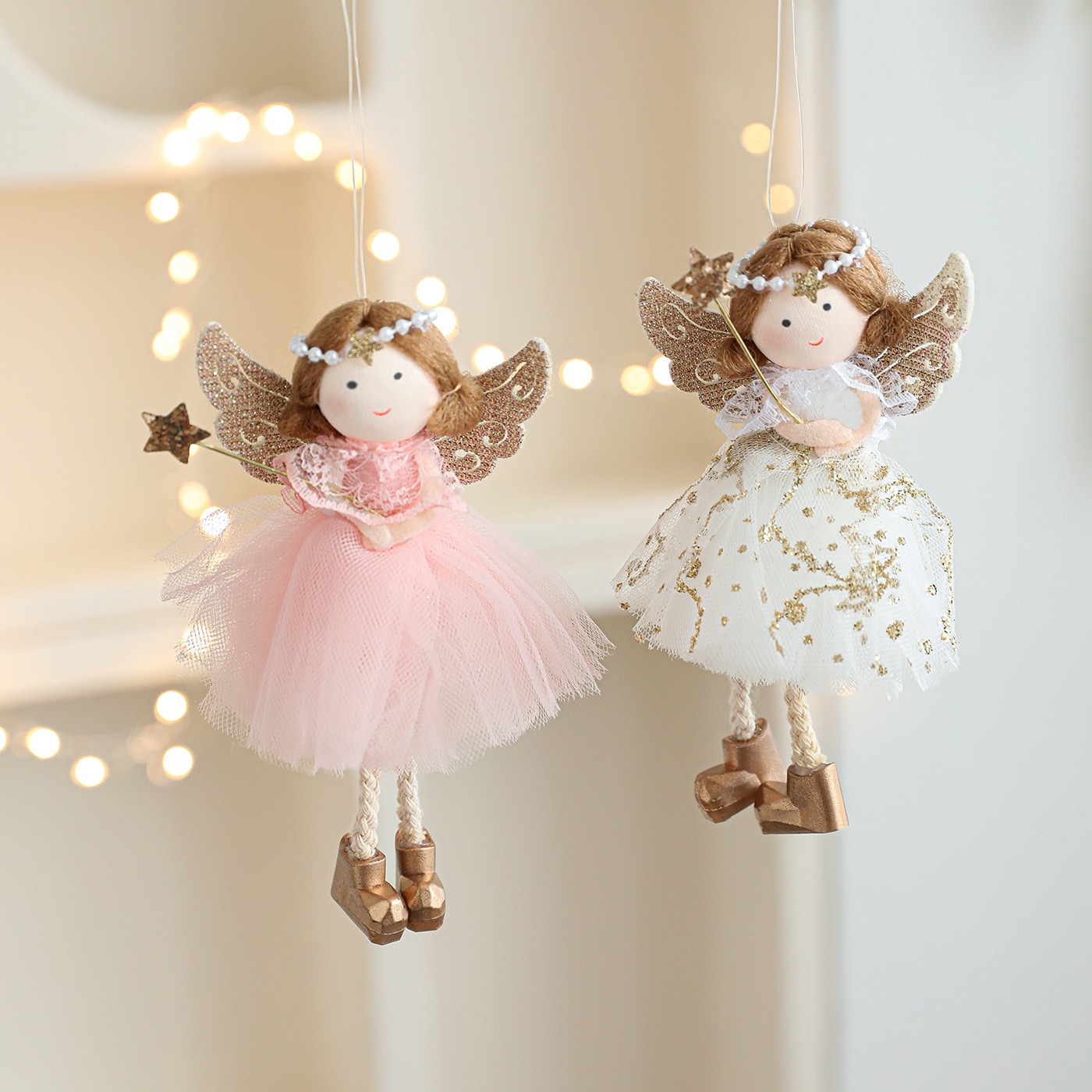 新款圣诞节毛绒鹿角天使女孩挂件圣诞树挂饰创意玩偶娃娃装饰吊饰
