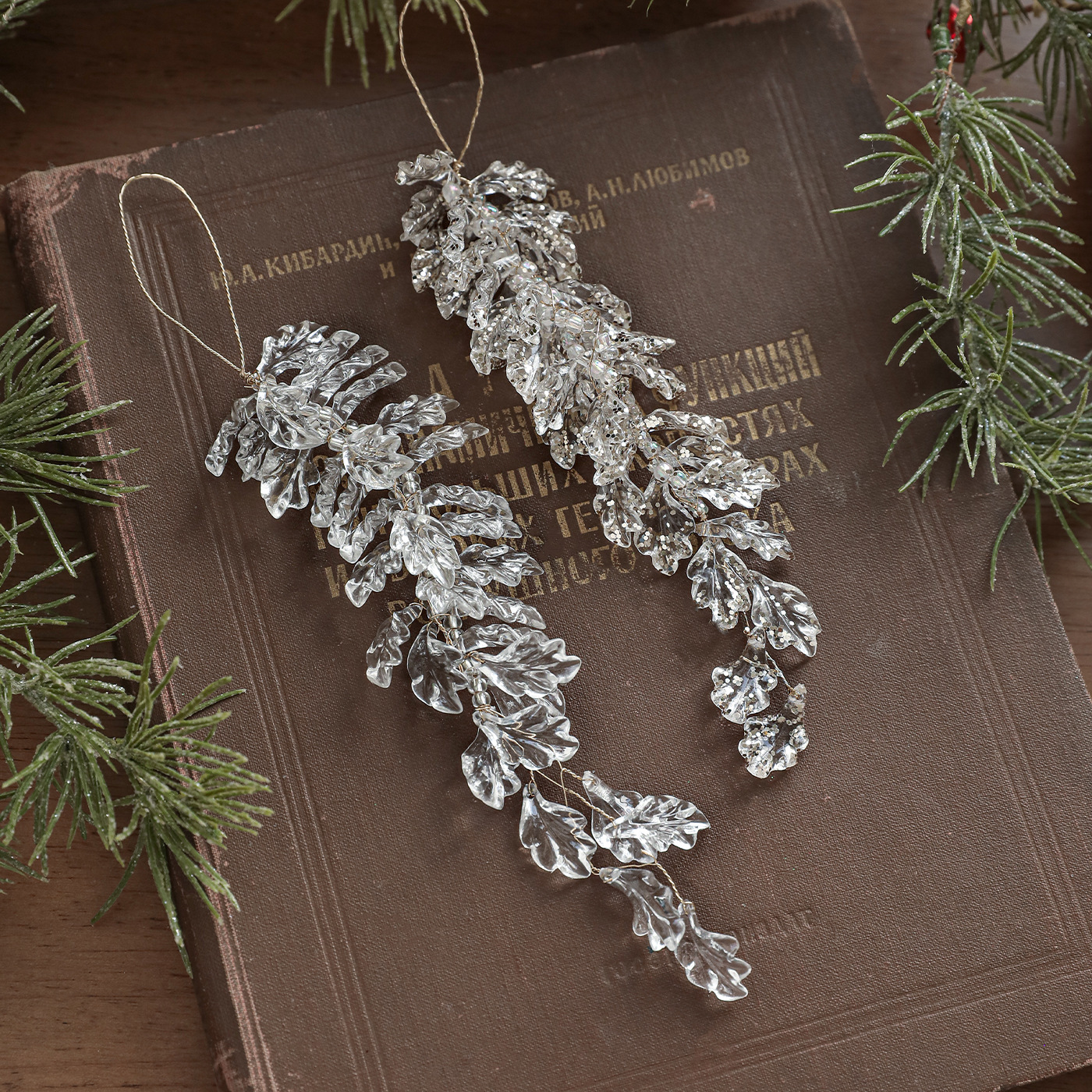圣诞节装饰用品亚克力高档香槟粉树叶挂件圣诞树装饰橱窗布置吊饰
