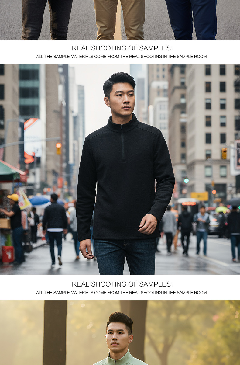 秋冬德绒一体绒立领男士保暖上衣半拉链高领卫衣通勤长袖打底衫