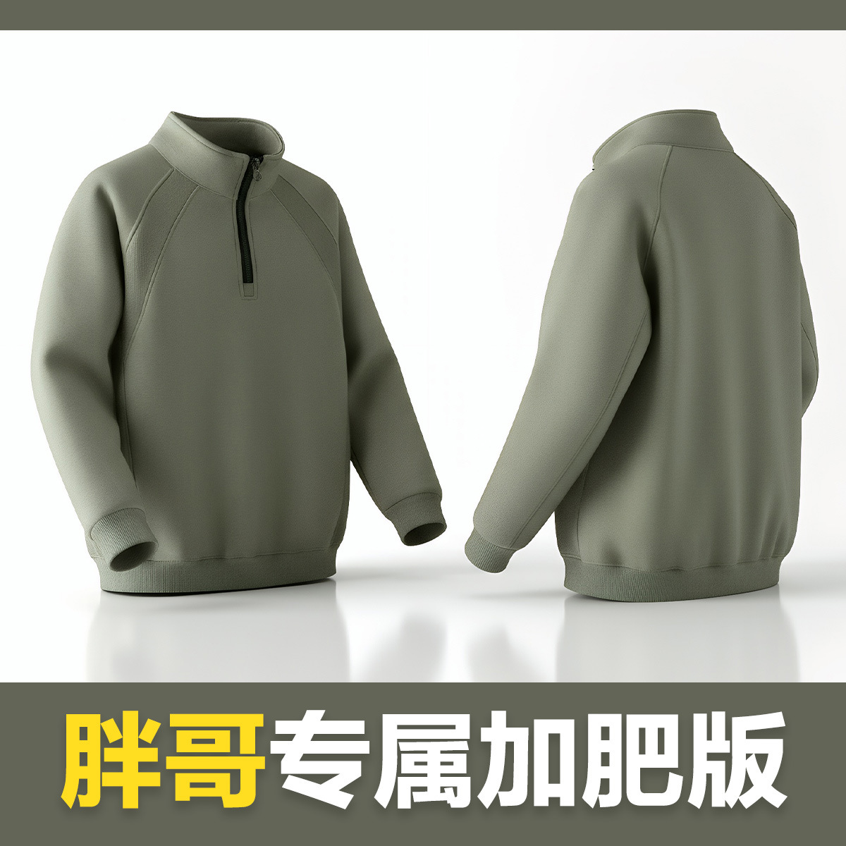 加肥版通勤立领半拉链卫衣加绒加厚秋冬宽松男士保暖长袖胖子上衣