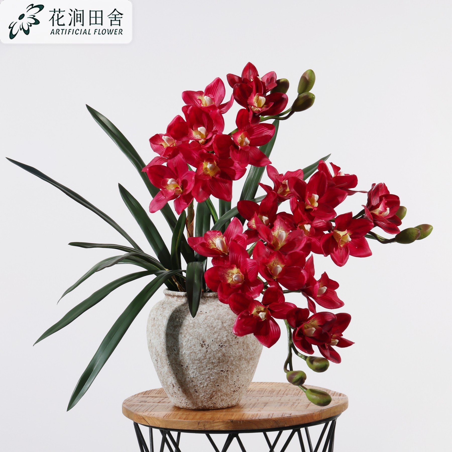 仿真花蕙兰 手感8头过浆兰花婚庆仿真花布置装饰花束花材道具假花