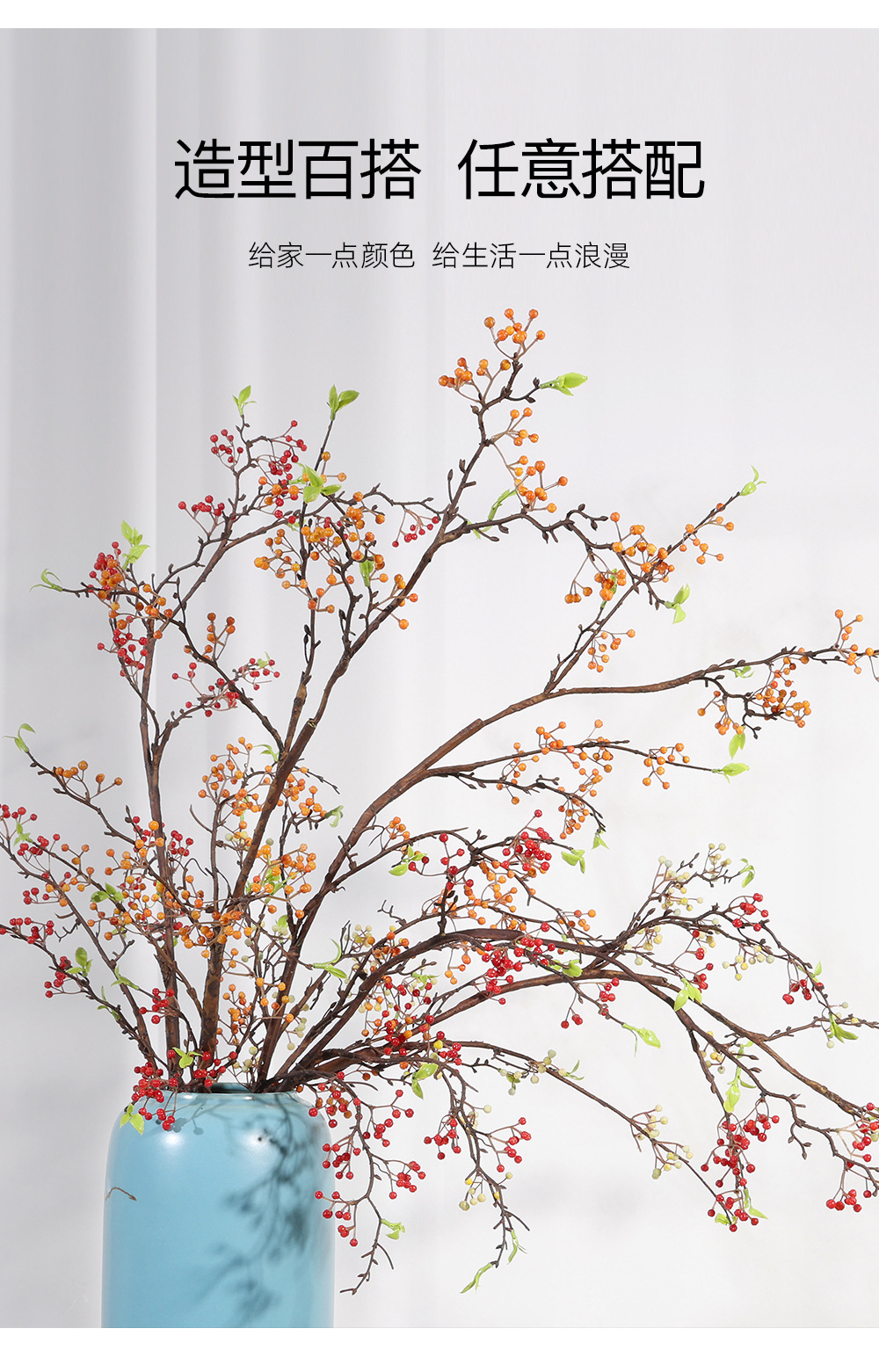仿真果实冬青果 秋叶山归来浆果树枝长枝野果子婚庆仿真绿植果子