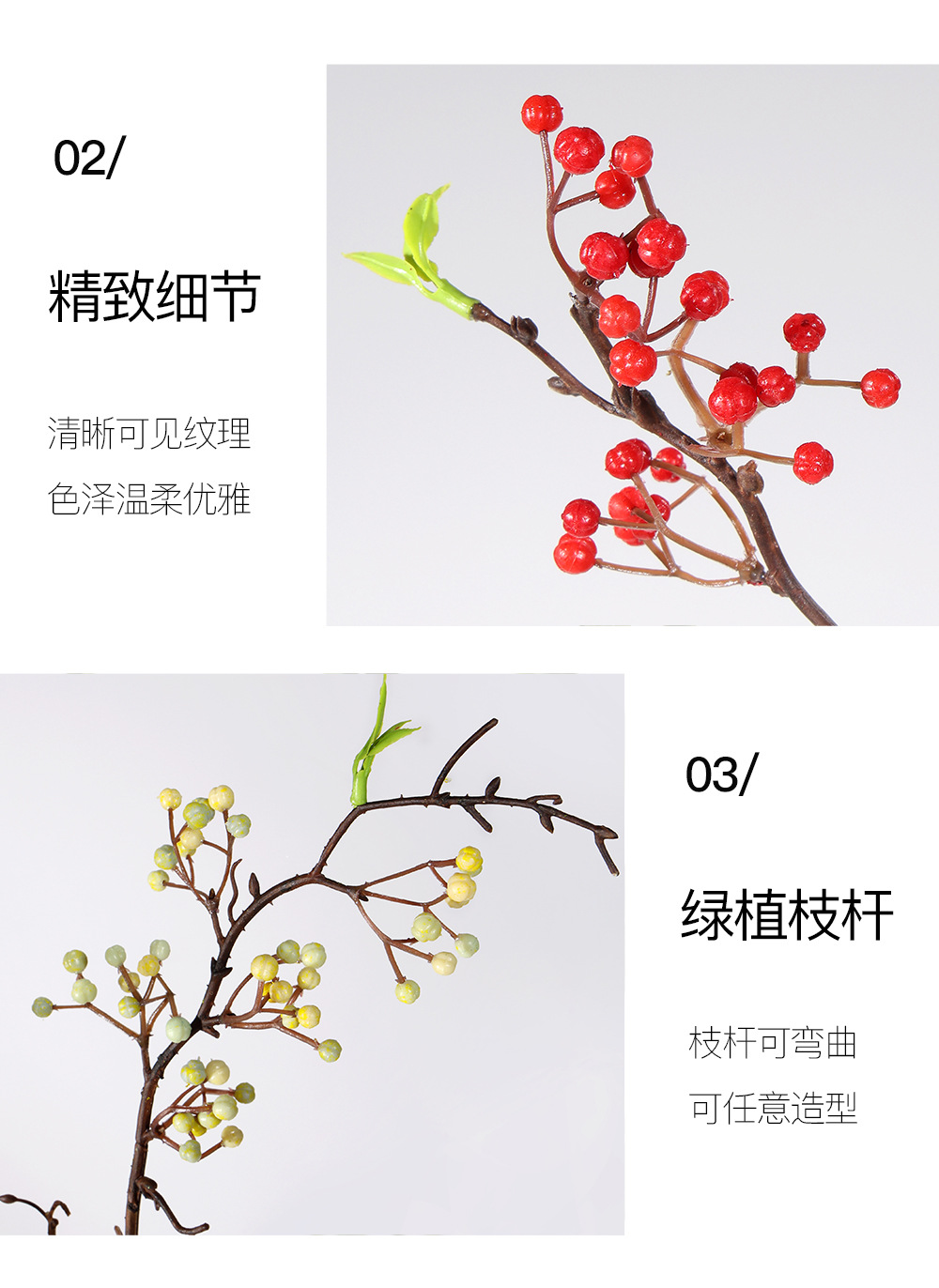 冬青果シミュレーションベリー枯枝果クリスマス紅果発財果紅果装飾ショーウインドー芸術生け花造景