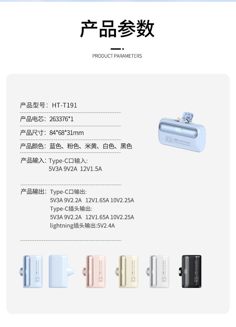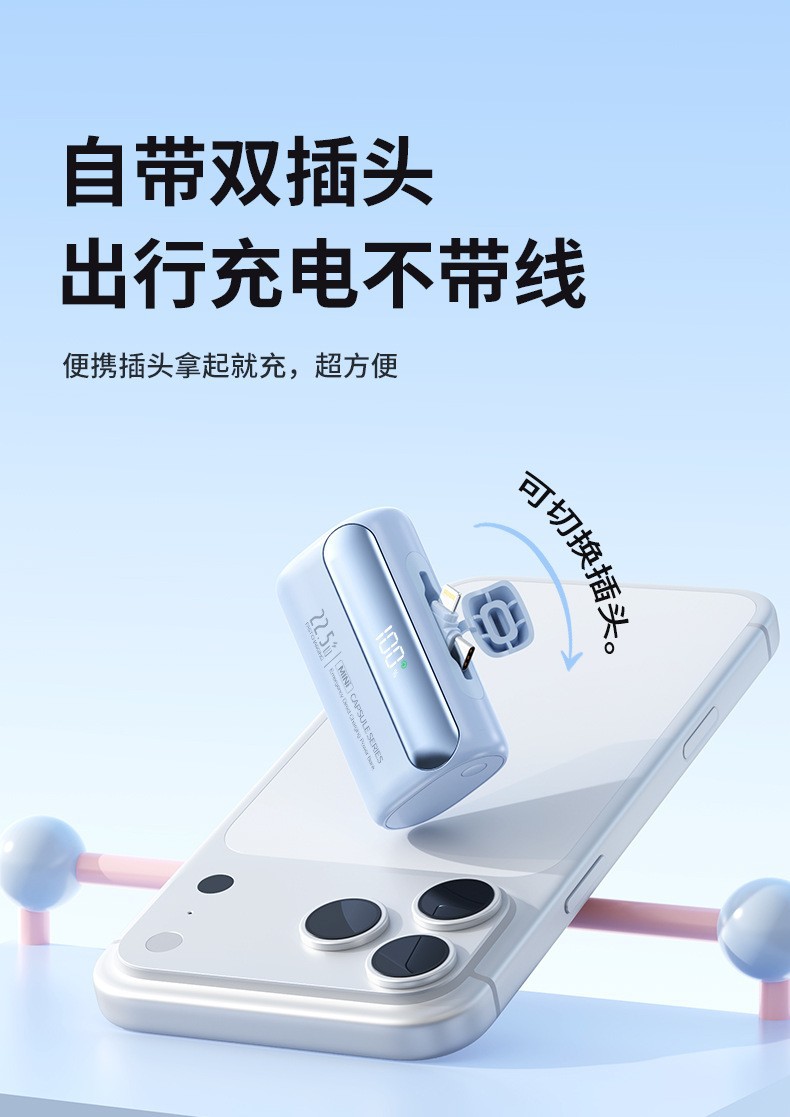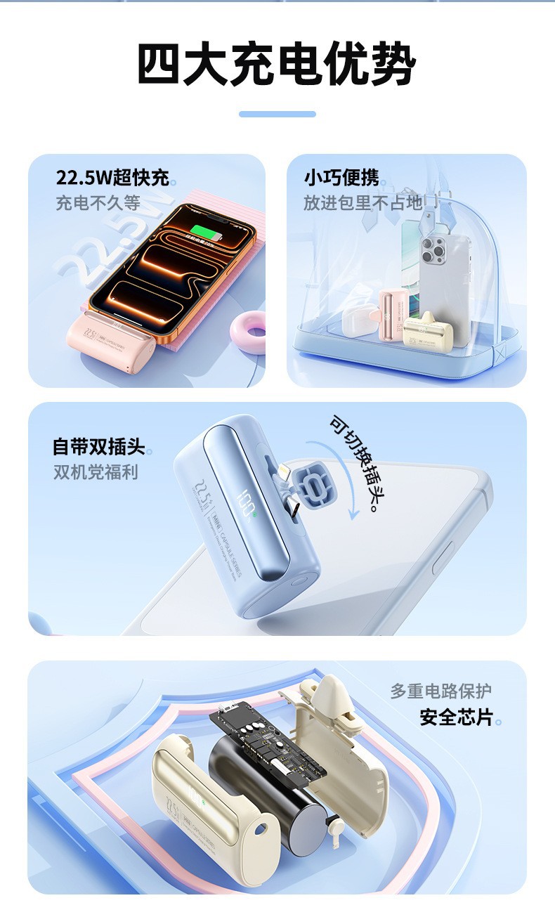 功能 小巧便携,多电压,自带数据线,支持快充,电量数显