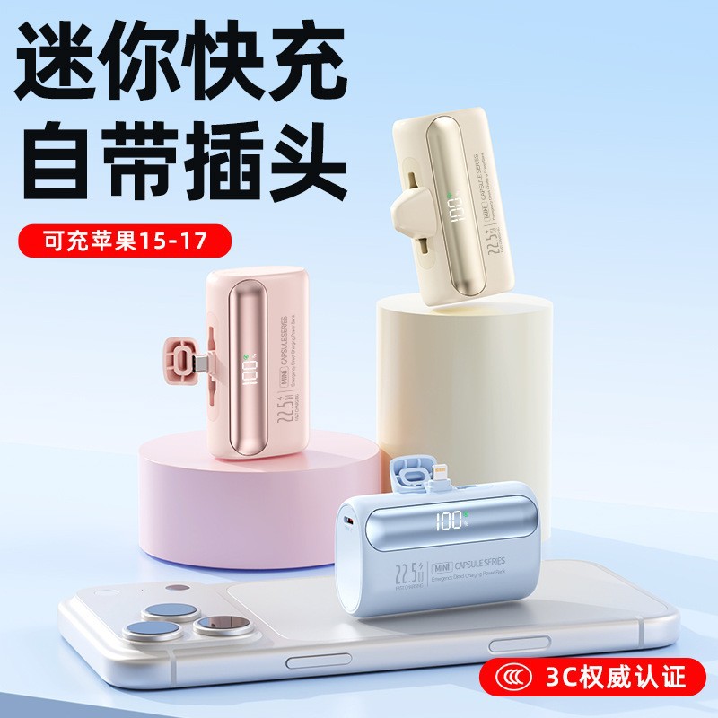 跨境充电宝迷你小巧口袋胶囊10000毫安便携式双插头移动电源印制