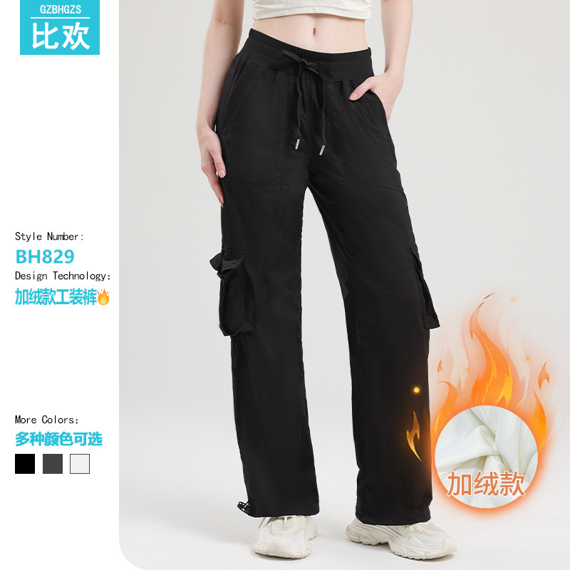 秋冬新款加绒工装裤抽绳宽松中高腰户外运动休闲百搭直筒长裤女