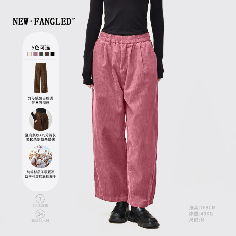 2025秋冬新款灯芯绒九分裤全棉休闲复古宽松显瘦松弛慵懒阔腿裤