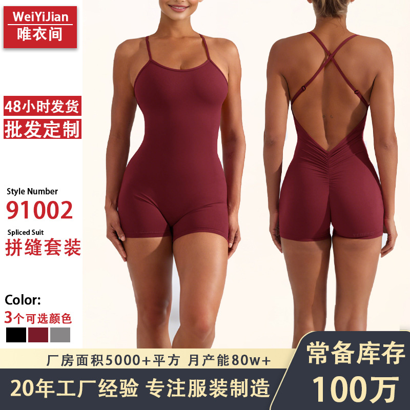 クロスボーダースポーツアウトドアランニングフィットネス速乾性スポーツウェアショルダーストラップバックレススリムヒップリフティングワンピーストップヨガウェア