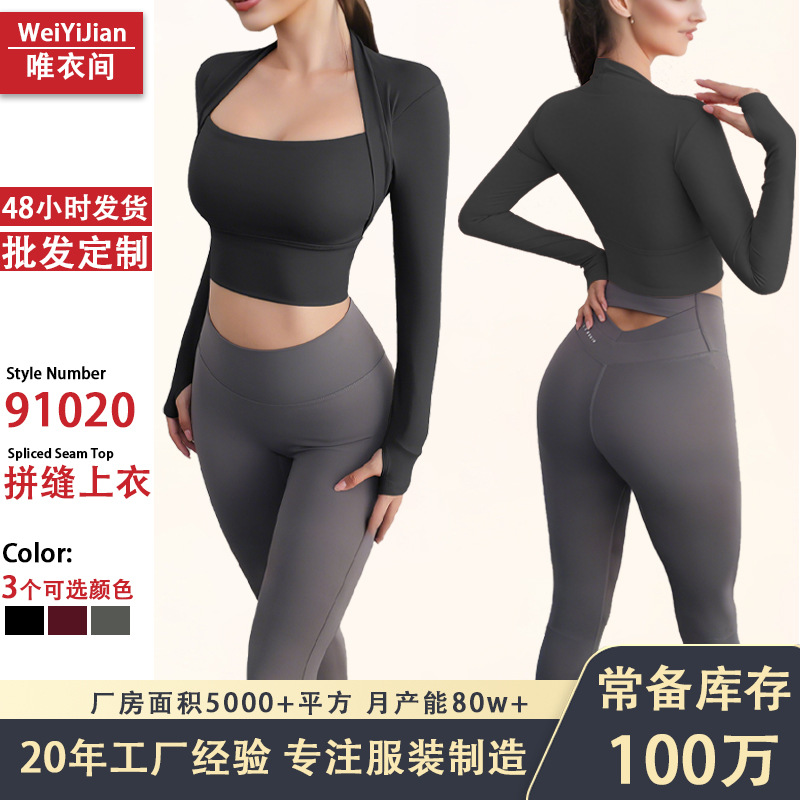 クロスボーダー ラグラン袖 ランニング ホルターネック 速乾 フィットネス スポーツベスト カスタム 長袖 夏用 日焼け止め レディース ヨガウェア