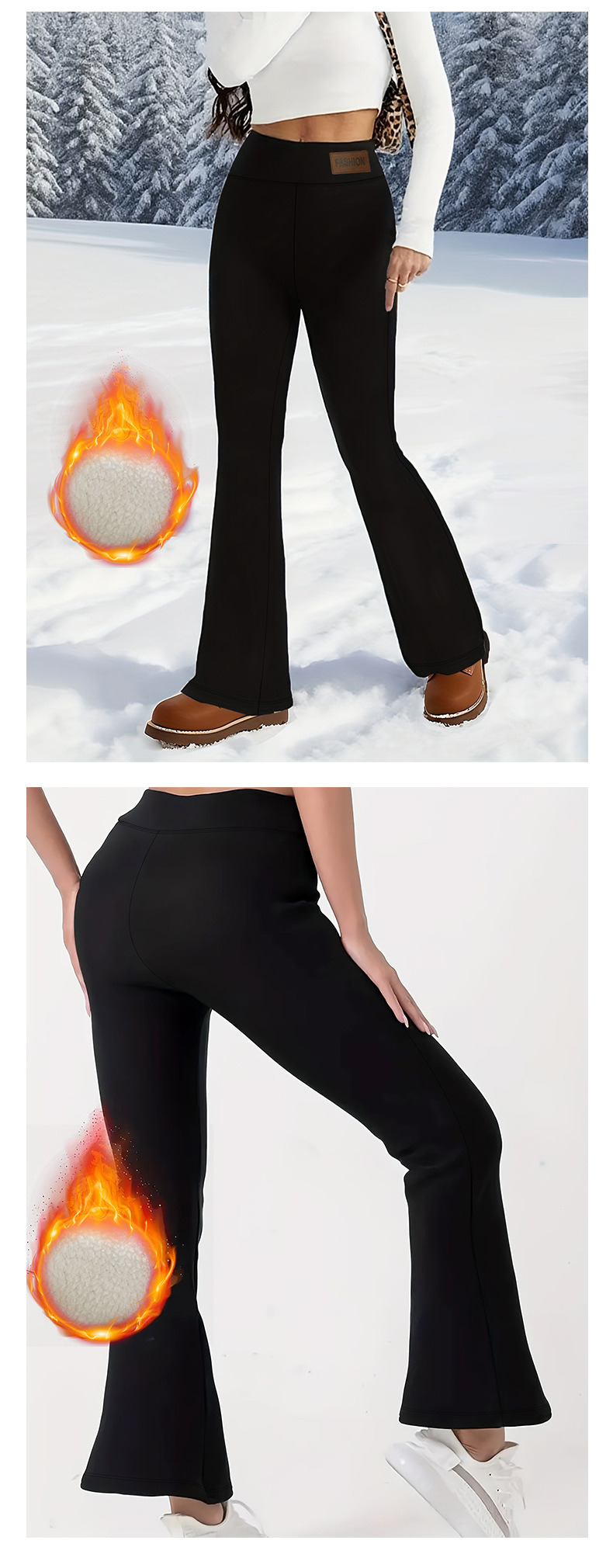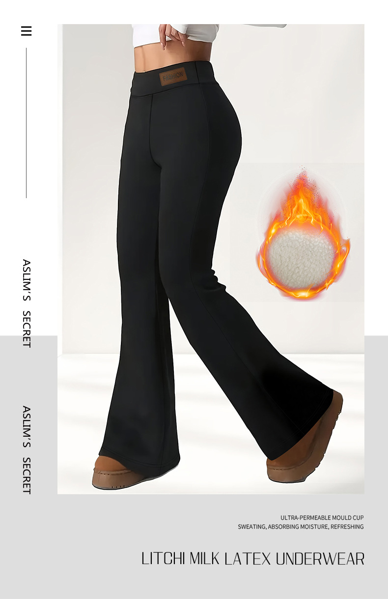 跨境新款冬季高腰弹力加绒喇叭裤显瘦提臀保暖休闲裤运动户外百搭