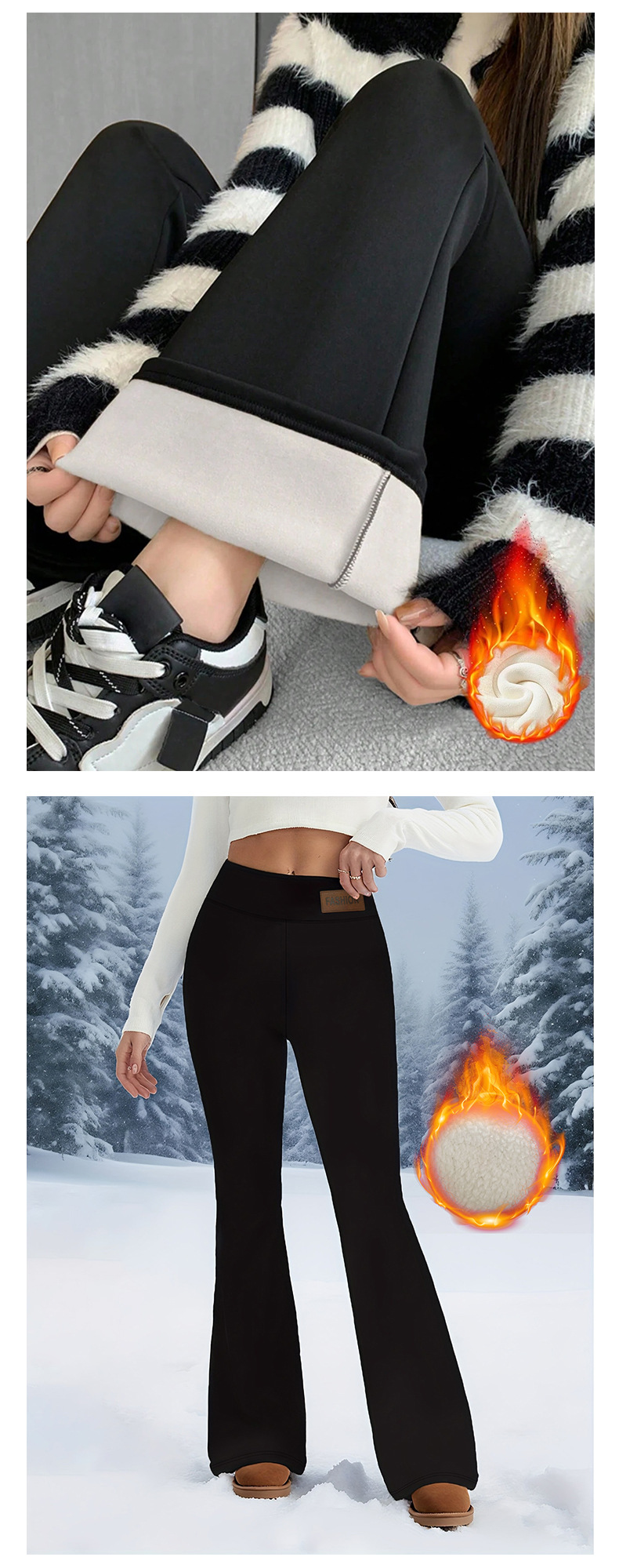 源头工厂新款拼缝长裤秋冬季腰口撞色加绒加厚高腰休闲显瘦喇叭裤