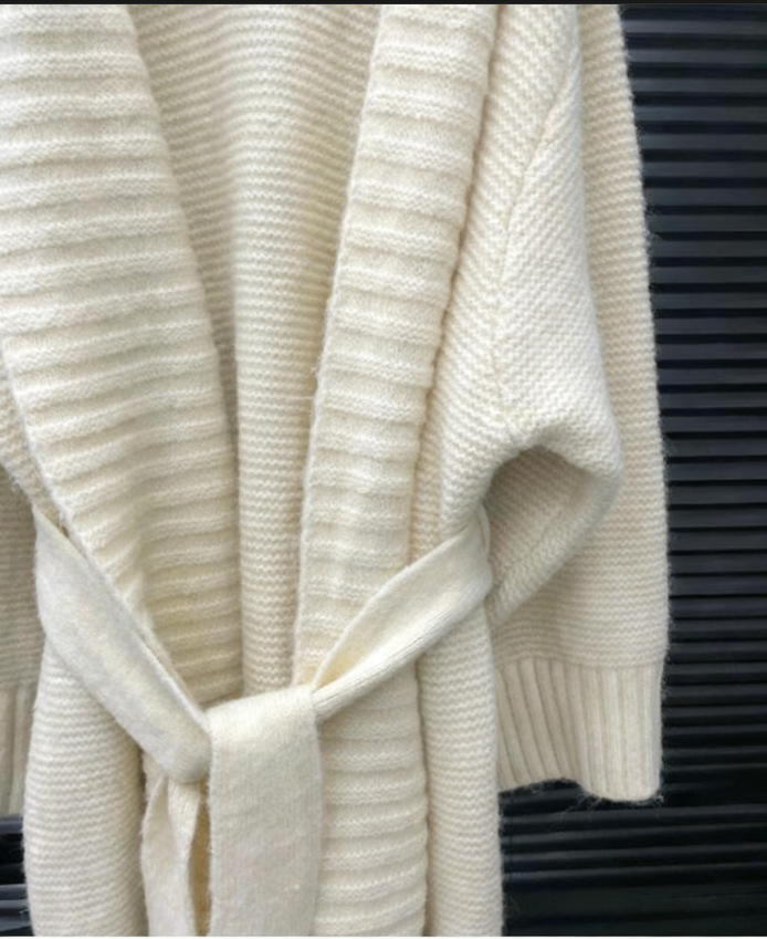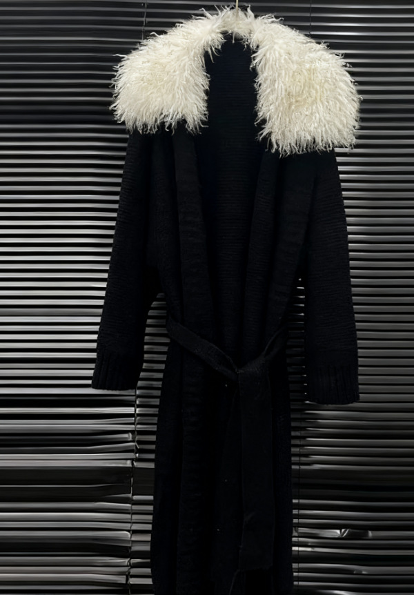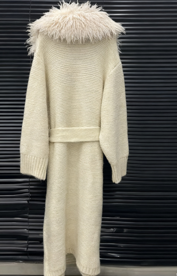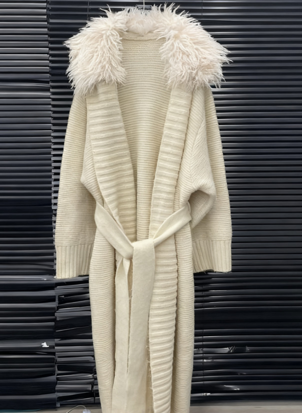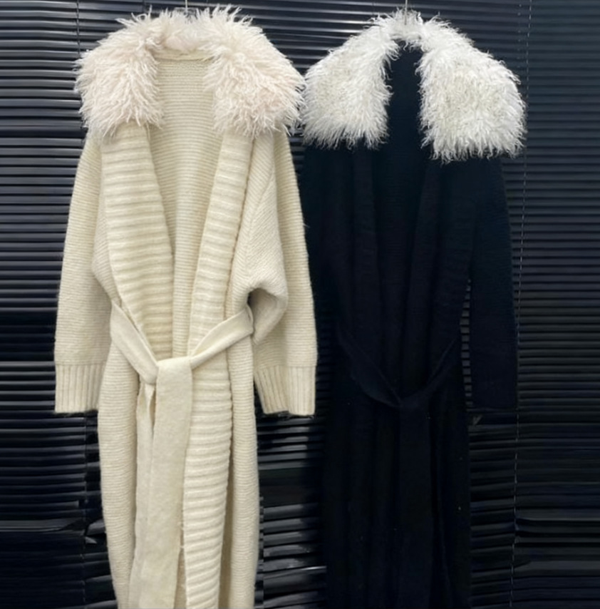 2025新款女装大毛领针织大衣女慵懒风宽松腰带长款毛衣外套
