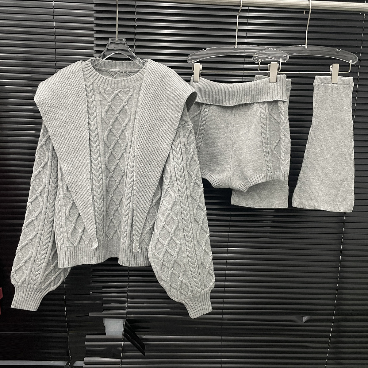 2025年早秋新款毛衣时尚套装女慵懒软糯宽松针织麻花上衣四件套
