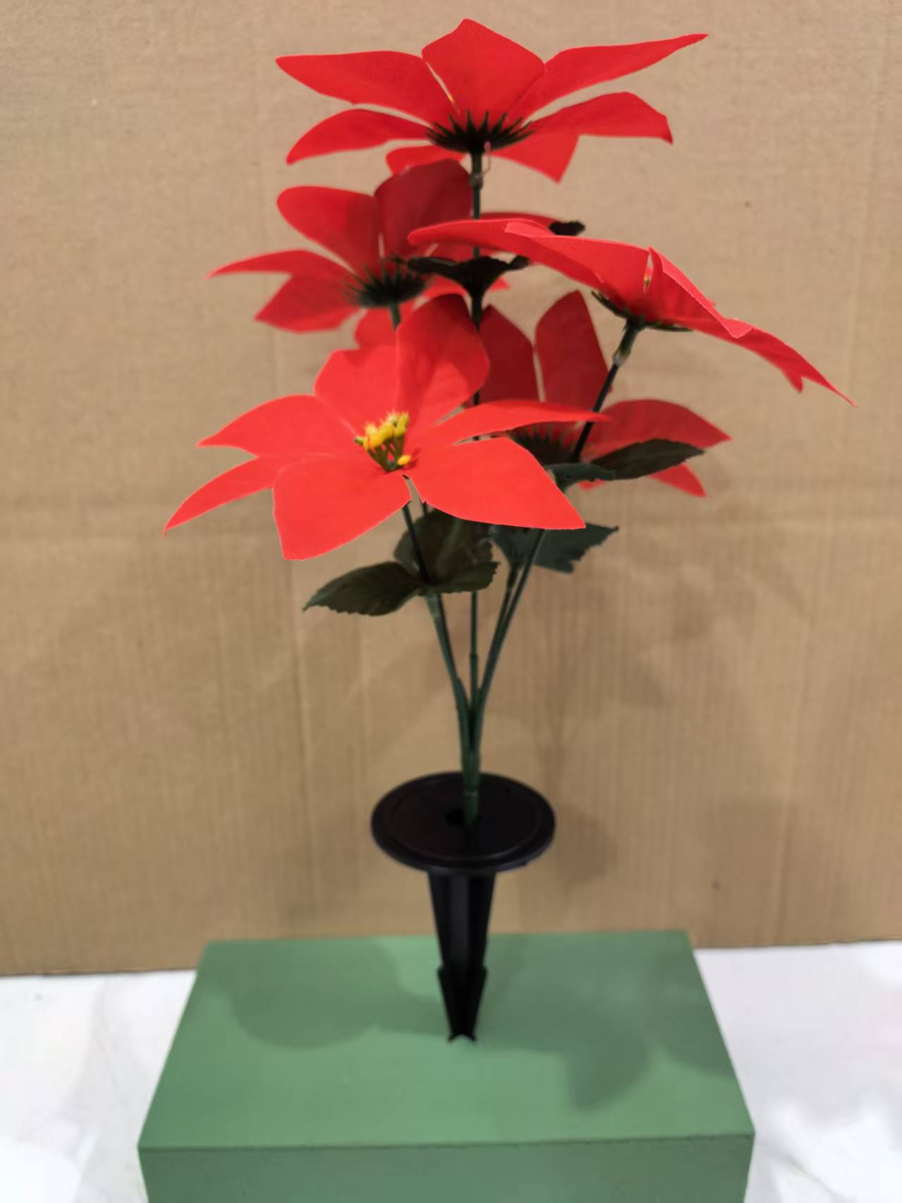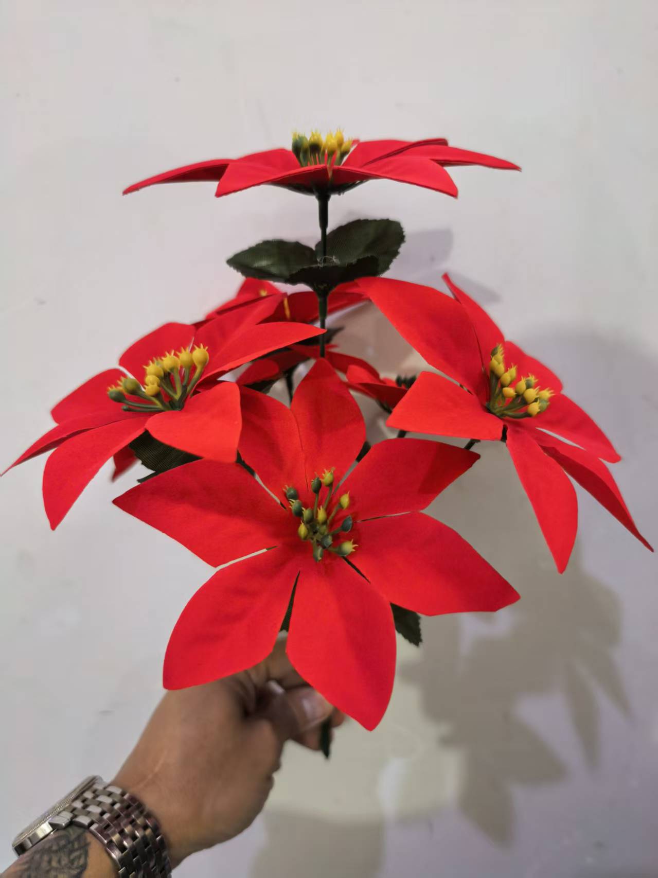 圣诞节手工仿真花5叉一品红花假花装饰绿植婚礼摆件配件植物批发