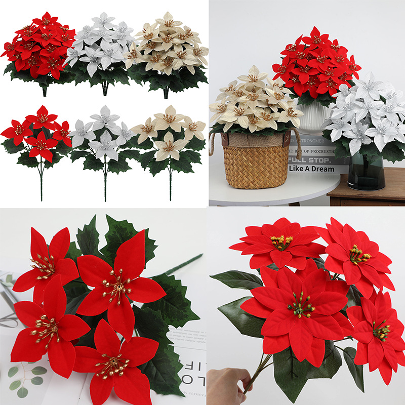 模擬クリスマスフラワーポインセチア束家の装飾装飾品お祭り雰囲気アレンジメント DIY 造花卸売