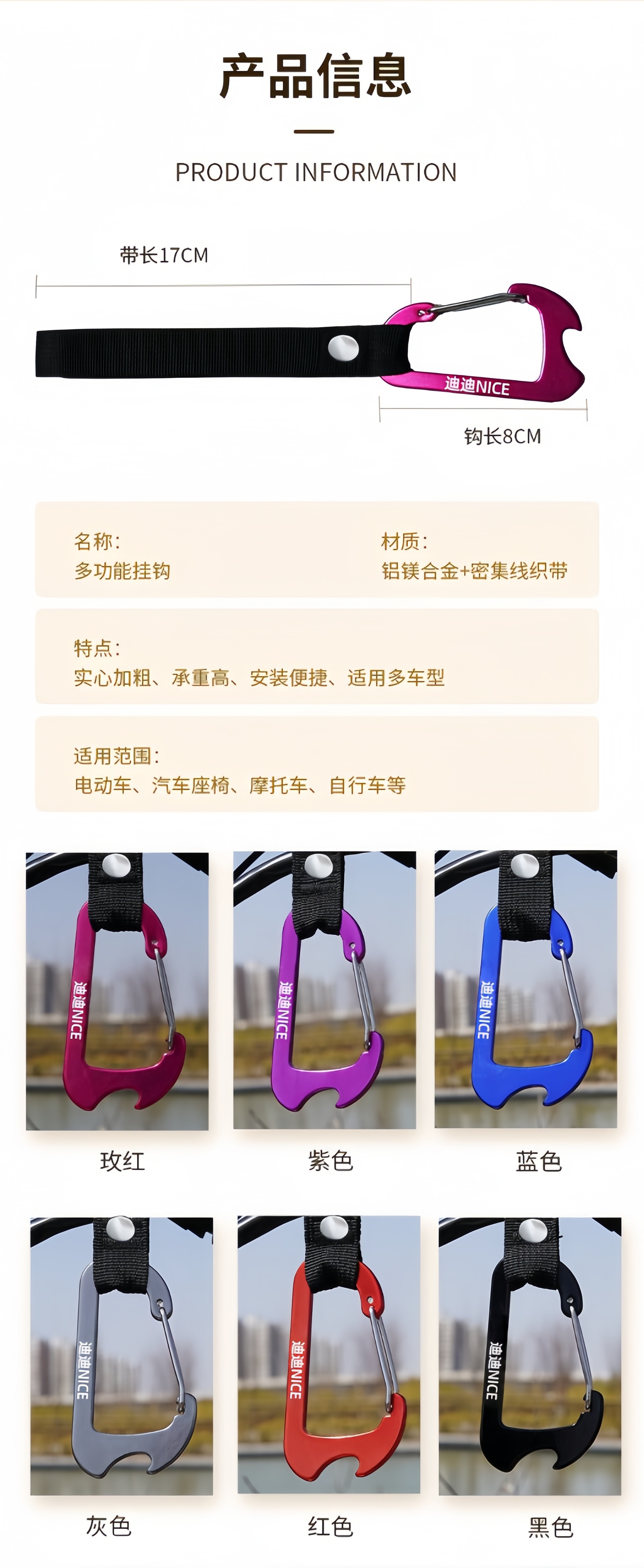 电动车挂钩 合金实心 高承重 婴儿车通用电瓶车
