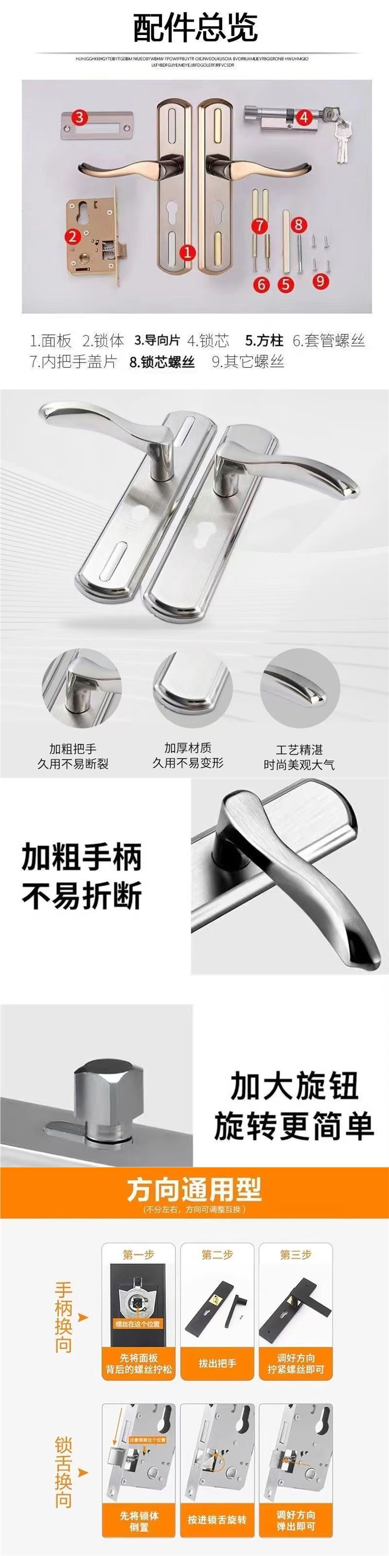 室内门锁卧室房间家用房门通用型门把手调节锁具老式换锁静音木门