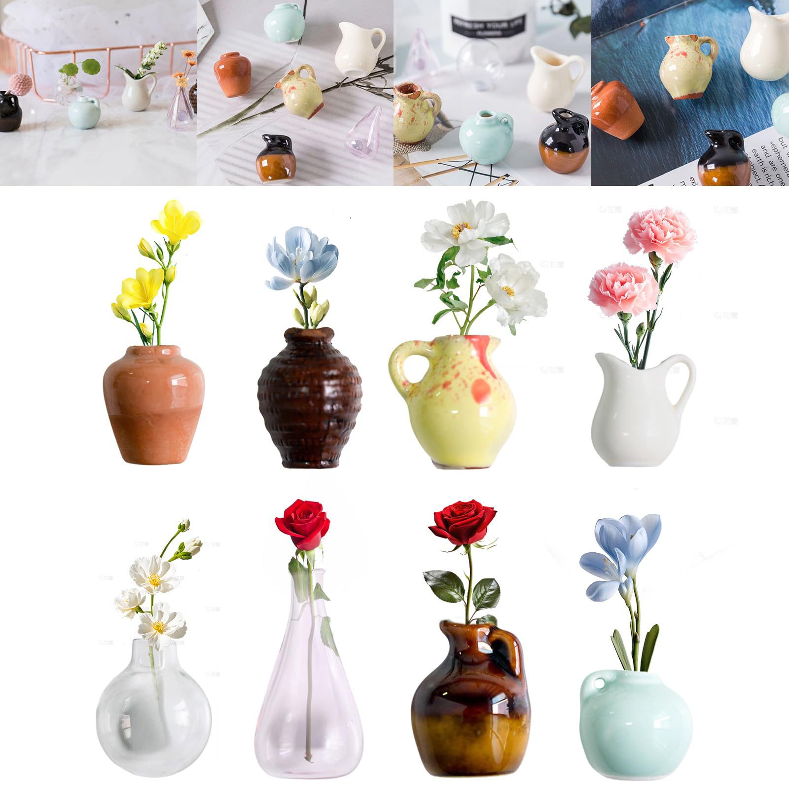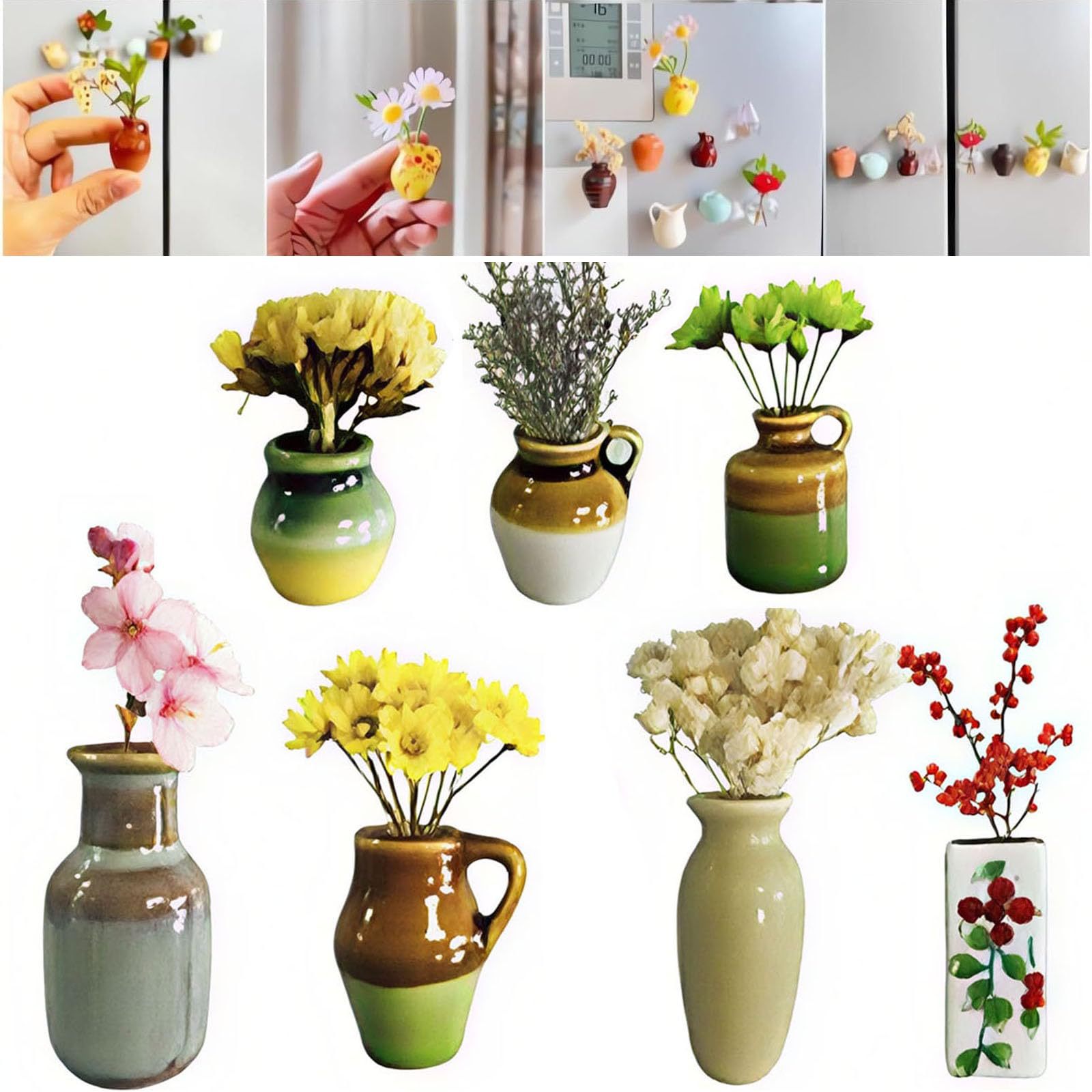 かわいい冷蔵庫マグネット両開きドアインターネット有名人インセラミックマグネットミニ花瓶立体セットパーソナライズされた創造的な装飾