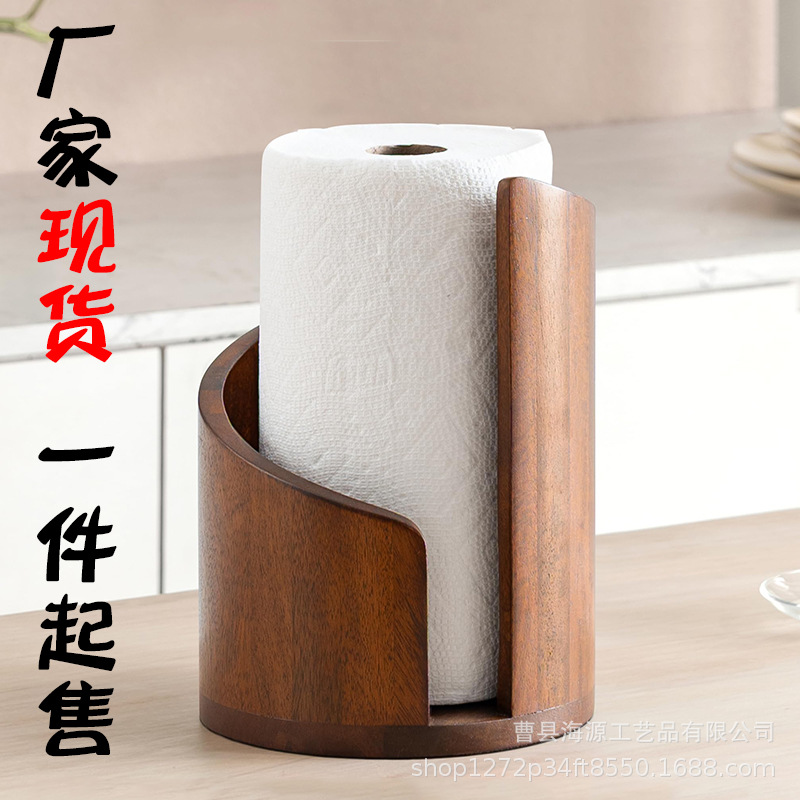 现货代发木制厨房纸巾架圆形厨房纸巾收纳架实木桌面纸巾存储架