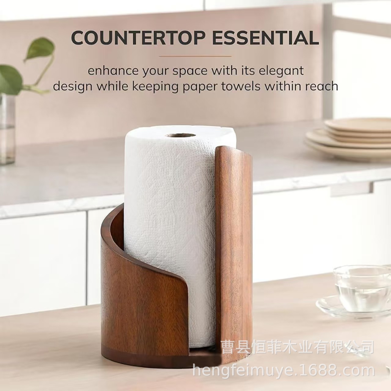 现货跨境批发木质厨房纸巾架圆形木质纸巾收纳架木质厨房纸巾存储