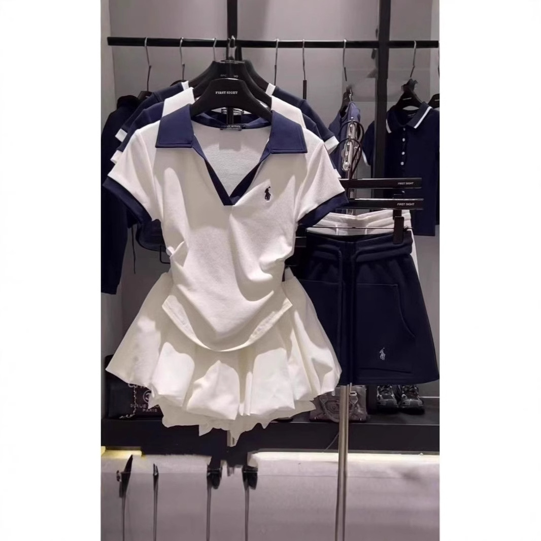 2025夏のデザイン感は腰を収めて襟をひっくり返して色の半袖のtシャツにぶつかってやせている雲のつぼみの半身のスカートのスーツの女性を現します。