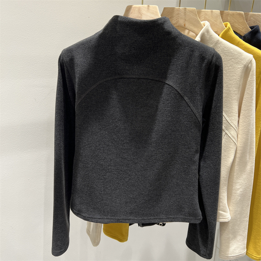 半高领德绒秋冬打底衫女2025新款秋季双拉链开衫外套修身卫衣内搭