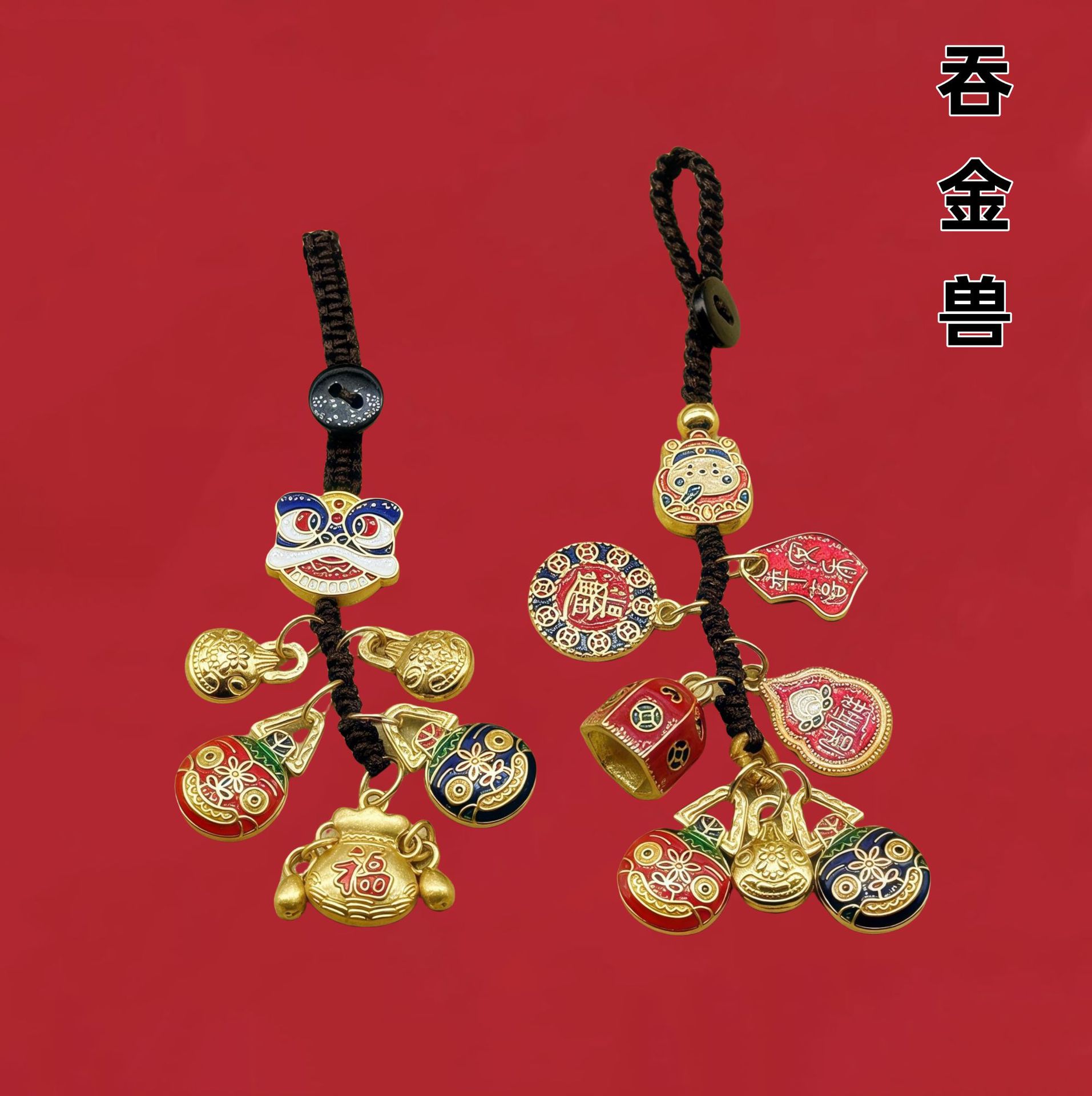 2 吞金国潮醒狮财神配饰挂饰钥匙链钥匙扣挂件国风