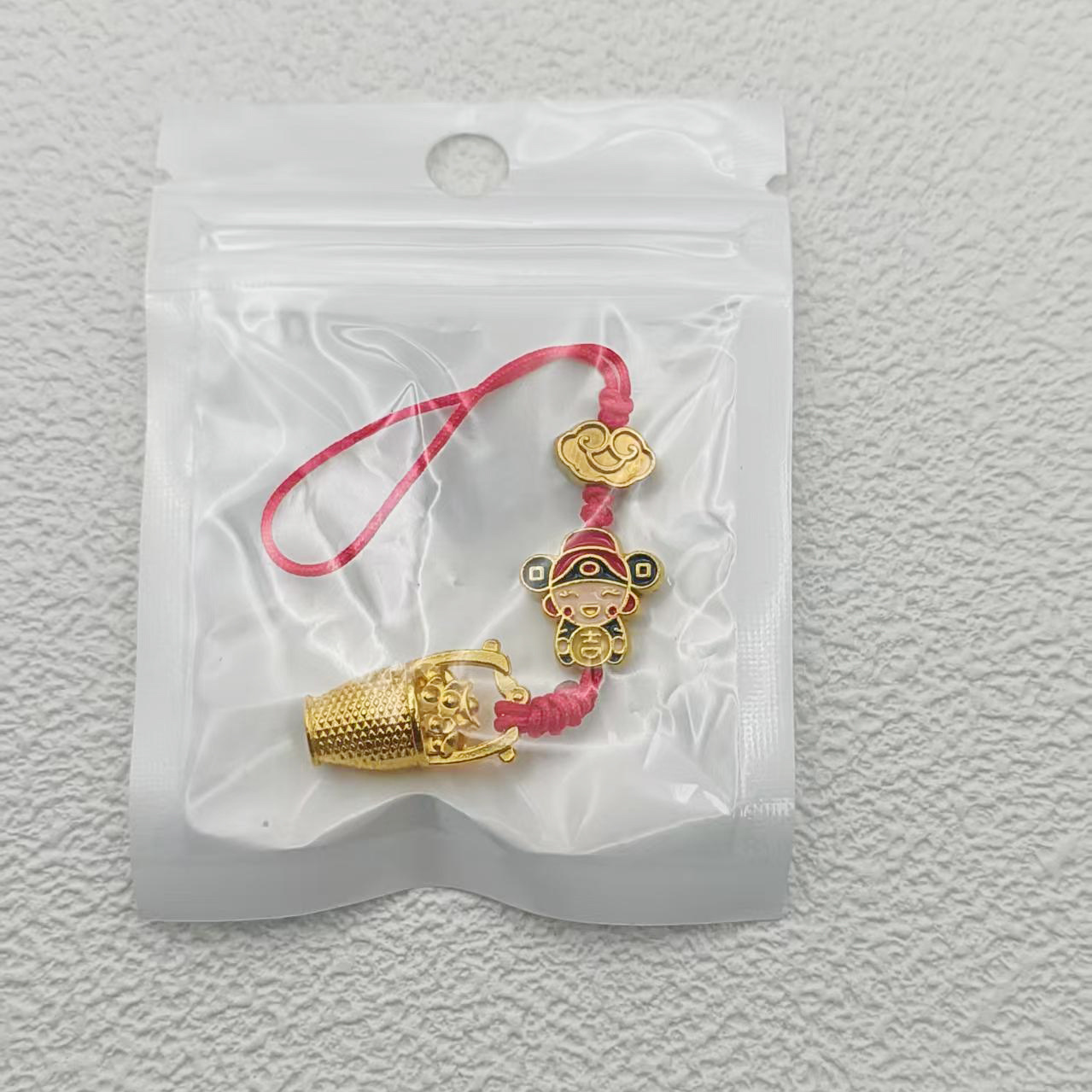 3 国潮挂件古法沙金小财神一桶金手机挂绳手机链钥匙防丢链车载挂饰金店沙金同款配件古法吊坠