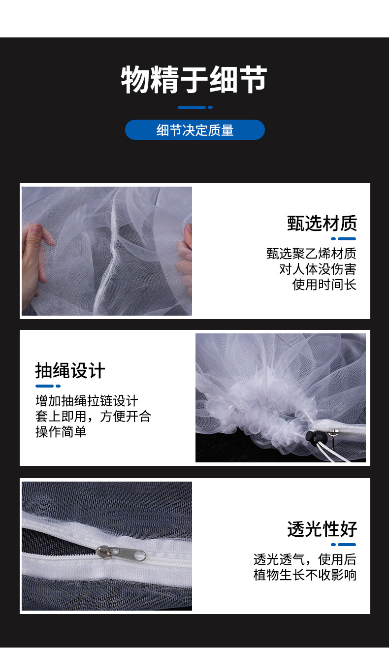 跨境供应防虫罩拉链拉绳植物防虫网果园果树大棚防鸟罩花园防虫网