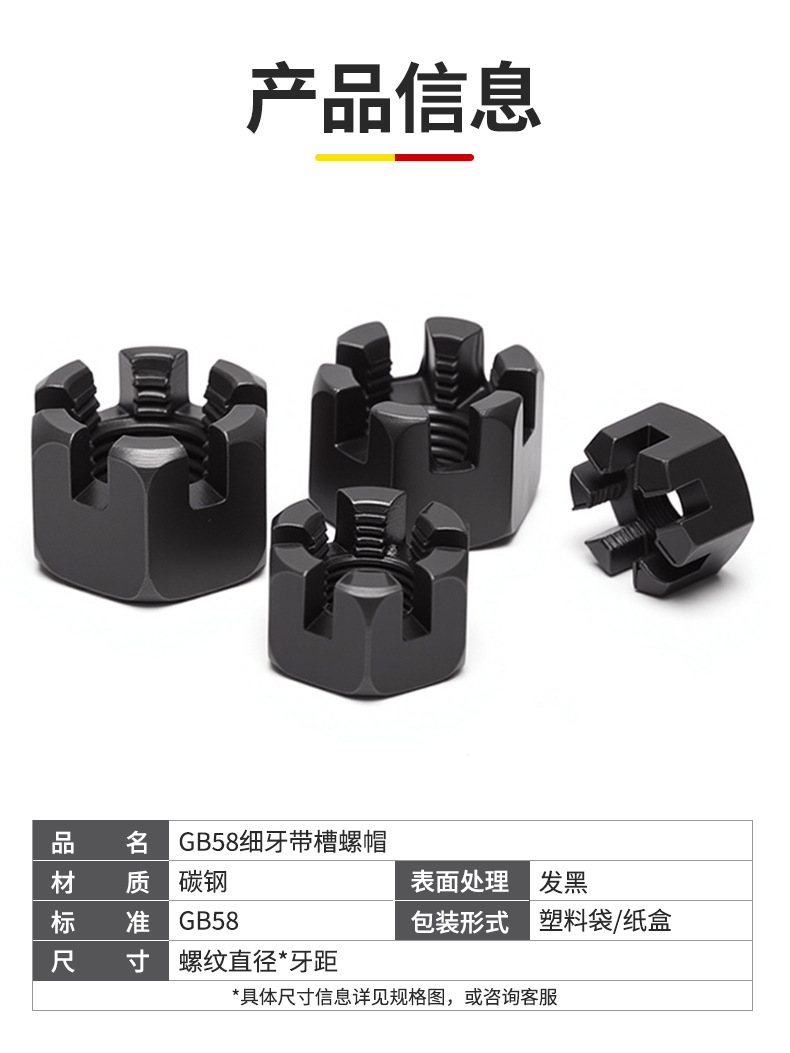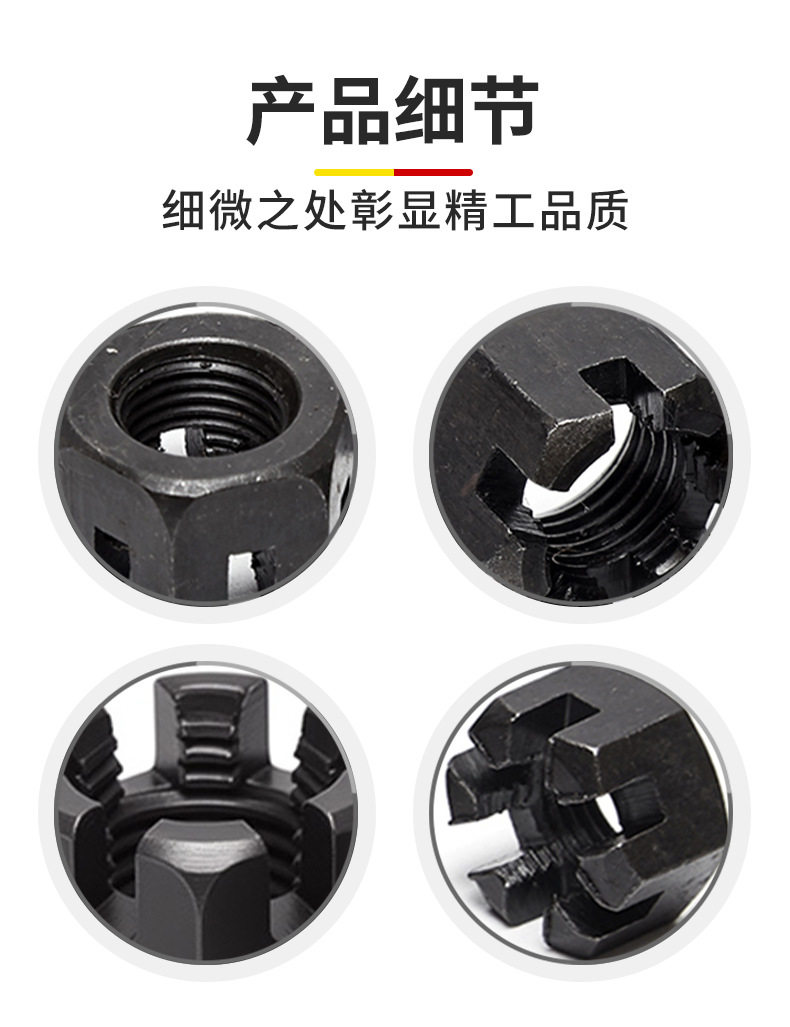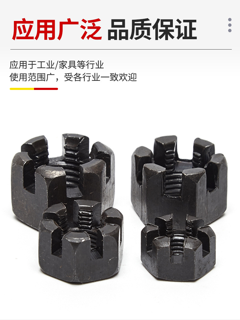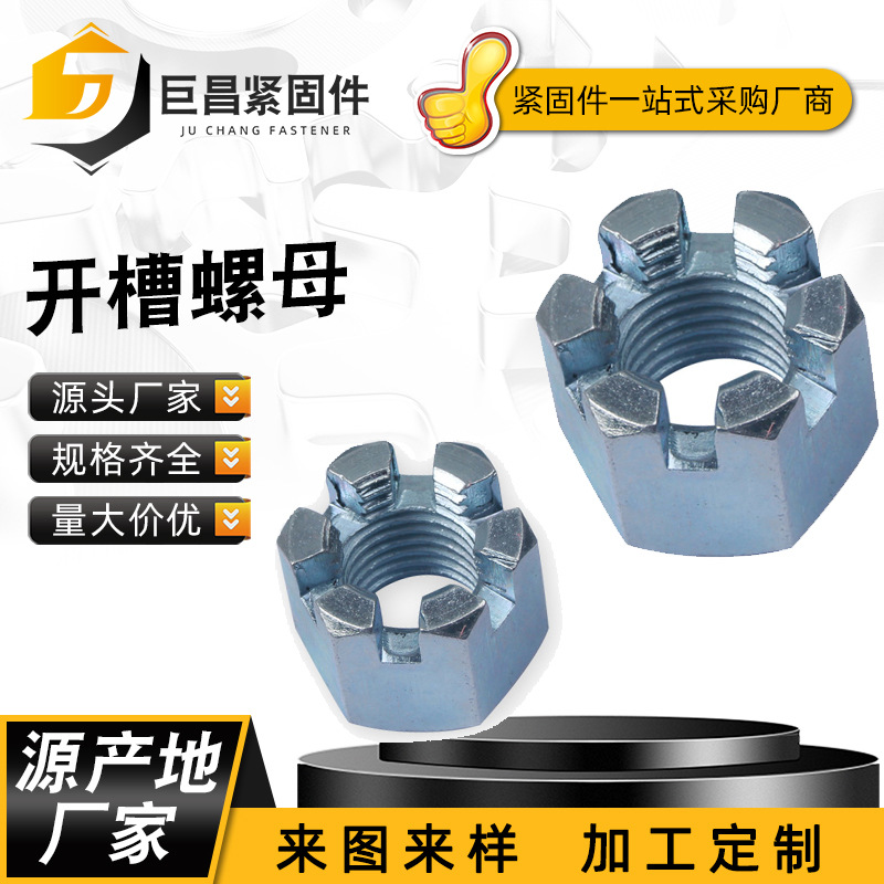 细牙六角开槽螺母GB58 碳钢带槽螺帽M8M10M12-M27M30M33M36M42