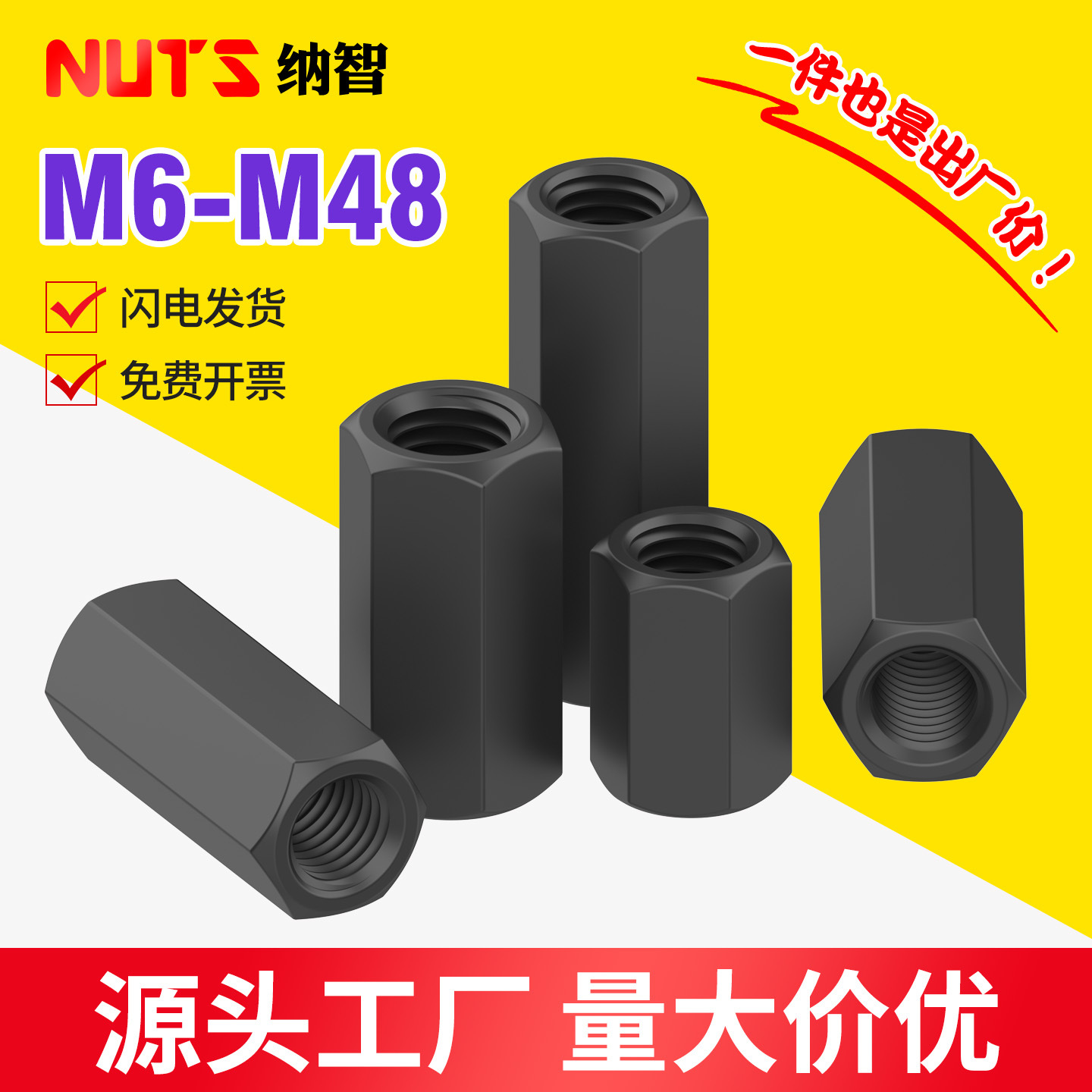 8.8级加长六角螺母高强度加厚螺帽加高螺母柱m10m12m16m20-m36