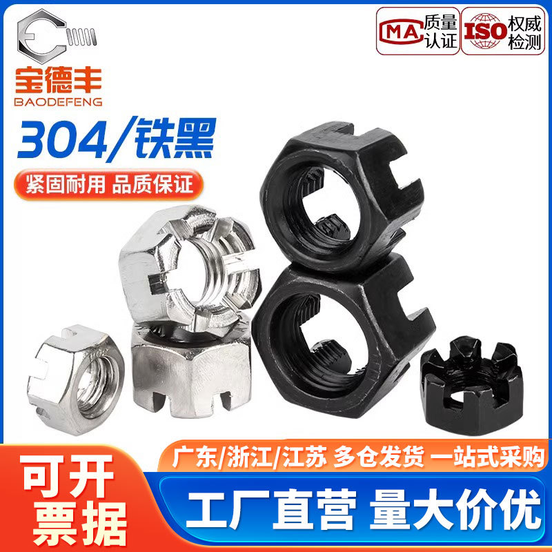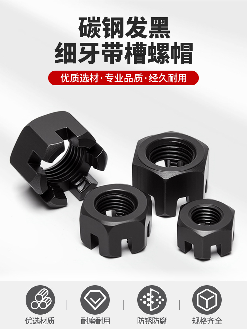 GB58開花ナット六角溝付きナット炭素鋼溝付きナットM6M8M10M12M16-M42