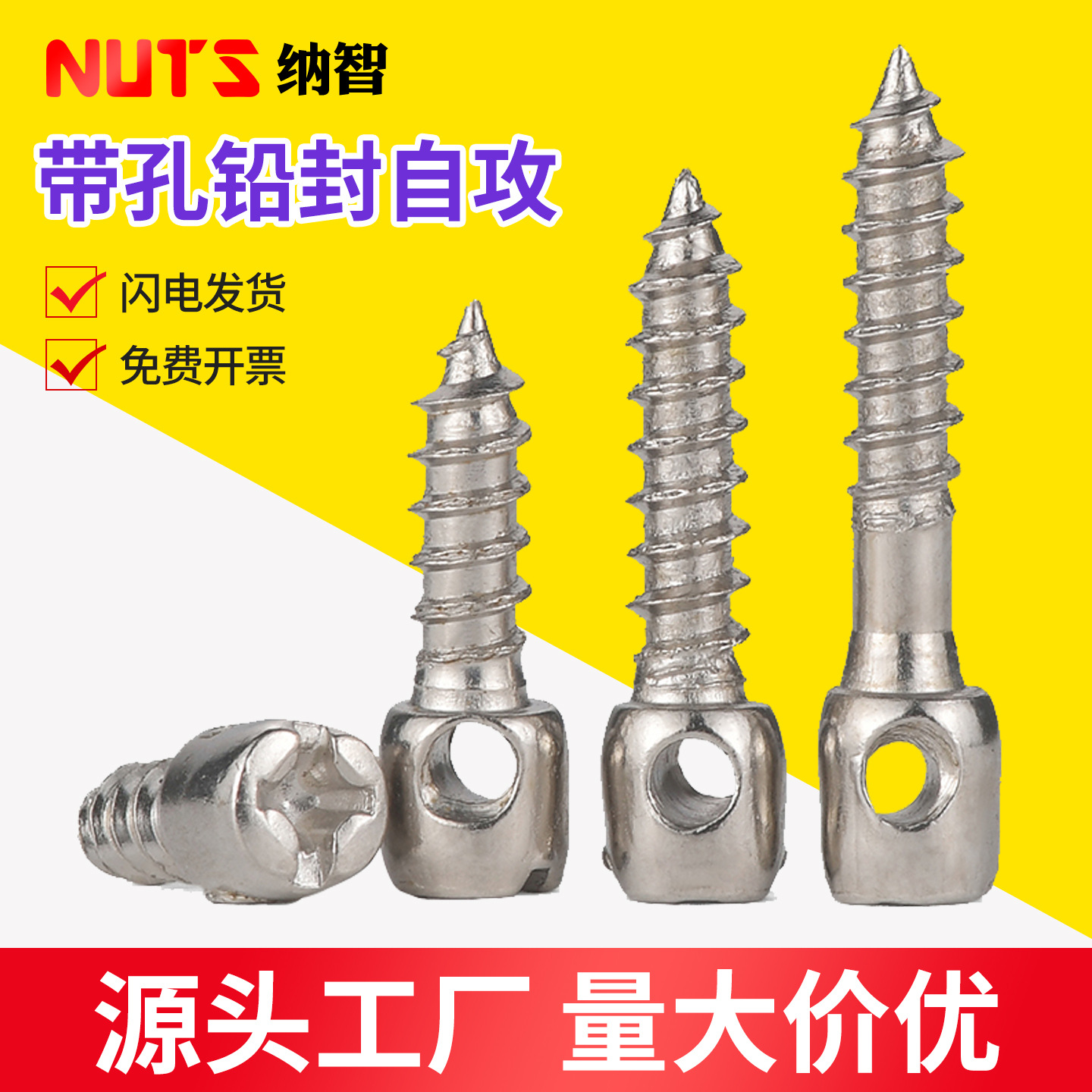 M4ニッケルメッキ鉛シールタッピングねじ電気メーター箱タッピングねじ円柱穴付きタッピングねじ鉛シールねじ