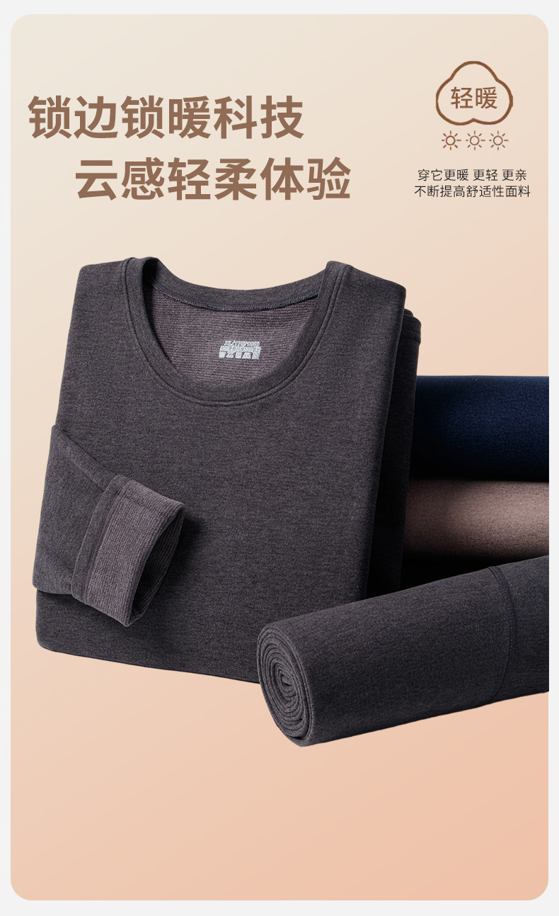 自己発熱両面徳絨毛秋冬男性保温下着男性セット加毛増厚秋衣秋ズボン1/2枚