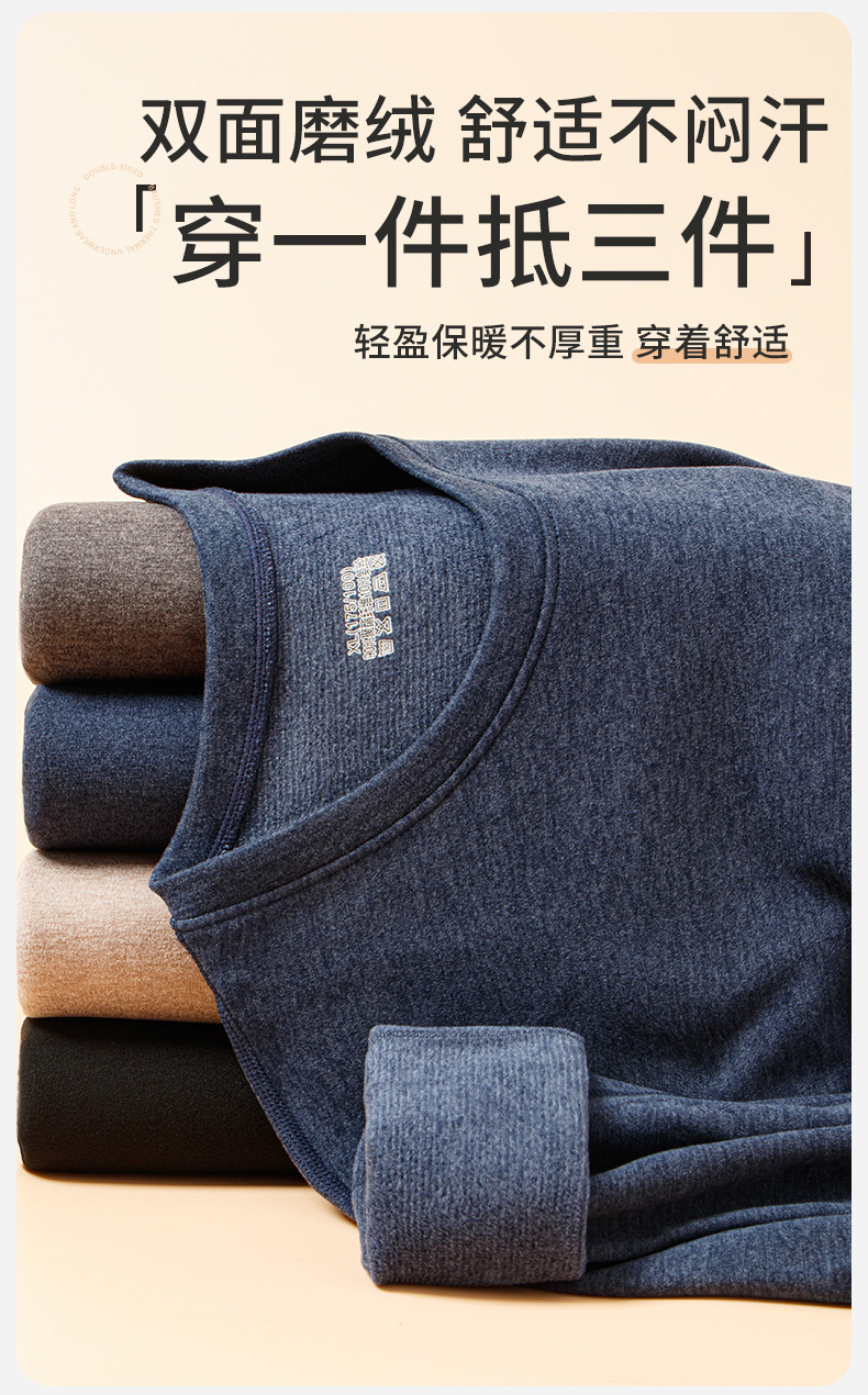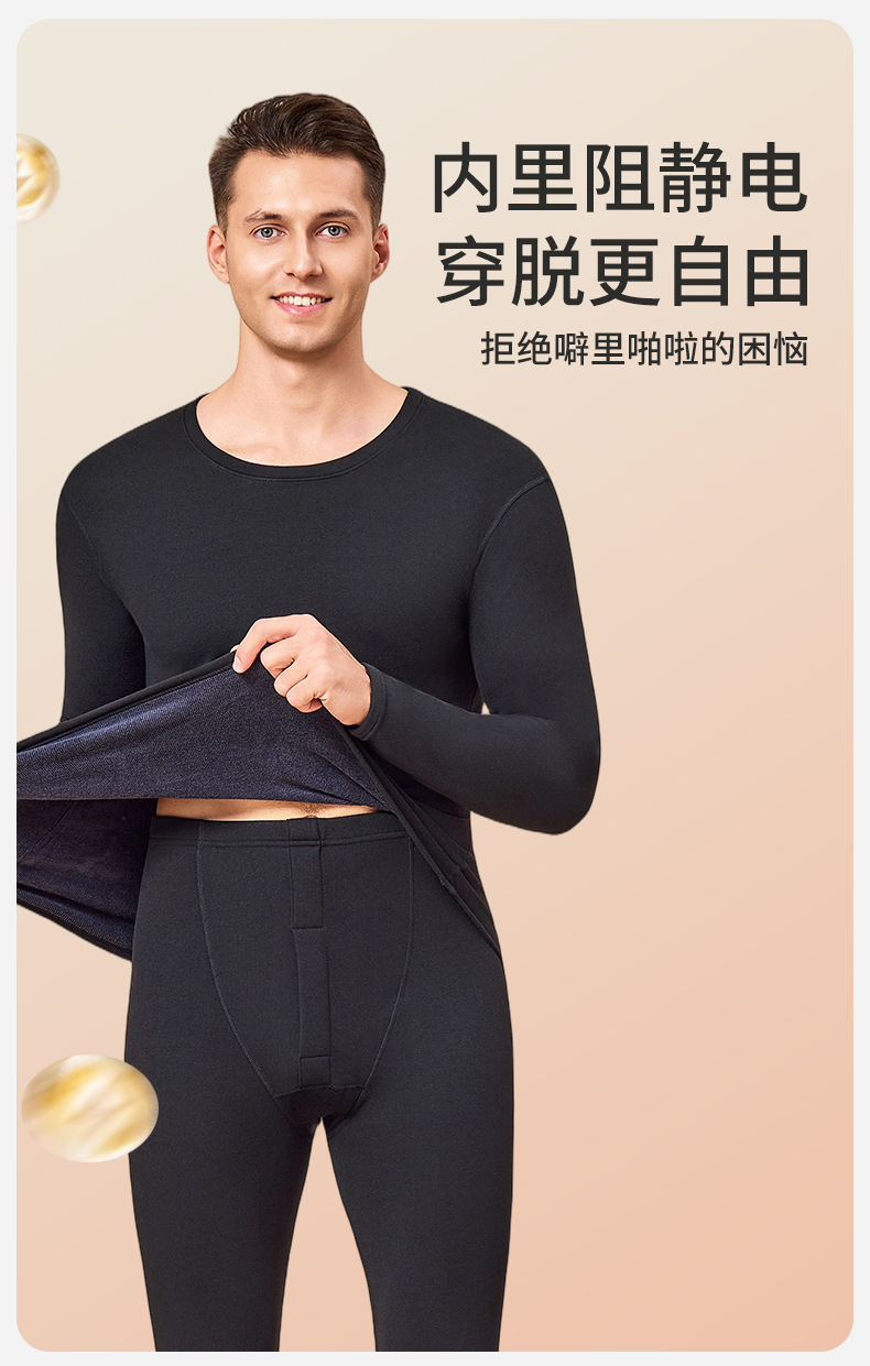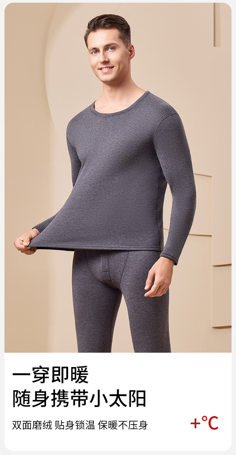 秋冬季自发热双面德绒男士保暖内衣男套装加绒加厚秋衣秋裤套装