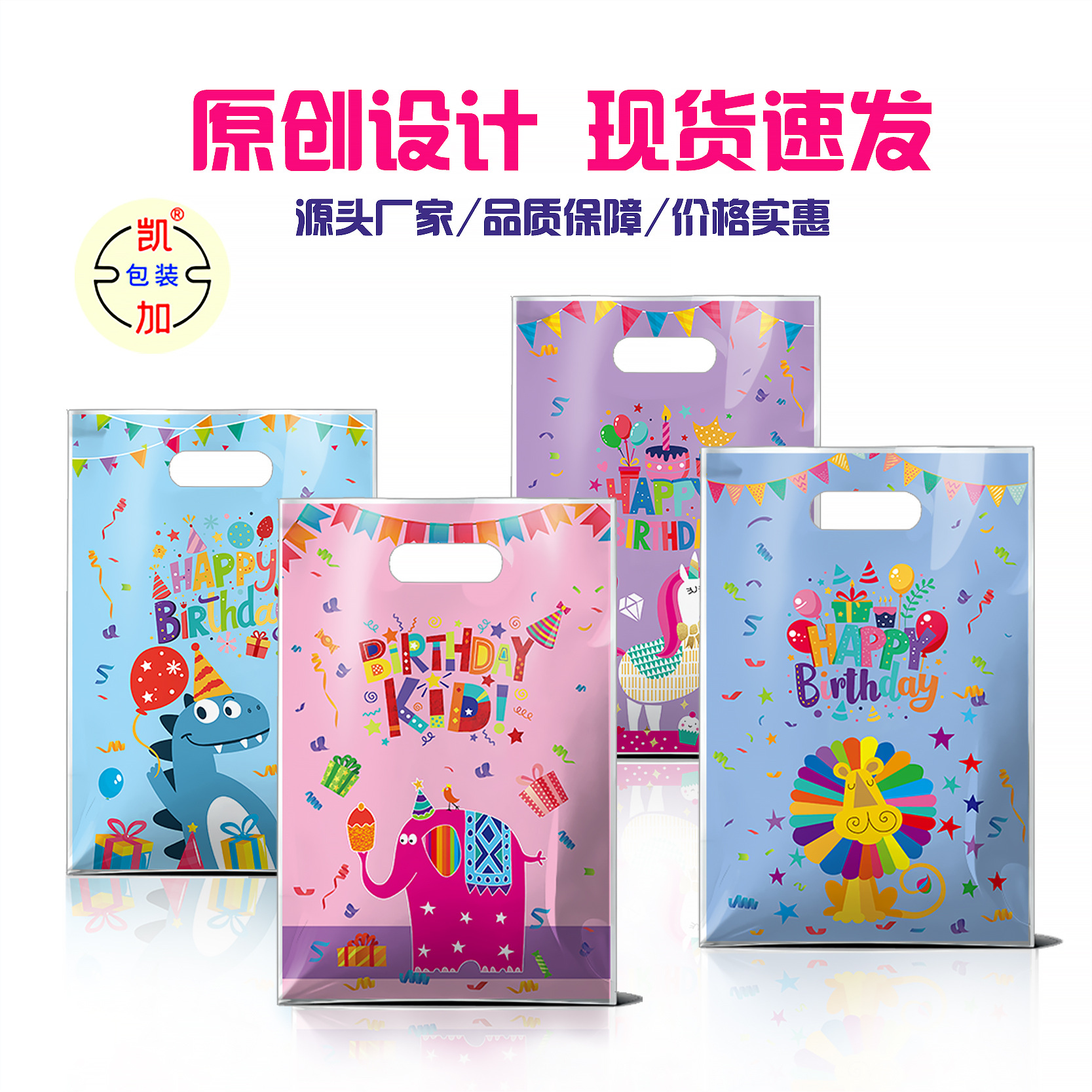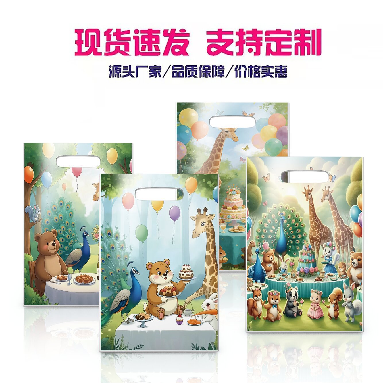 跨境卡通动物生日聚会手提袋珠光膜糖果包装袋加厚礼品礼物包装袋