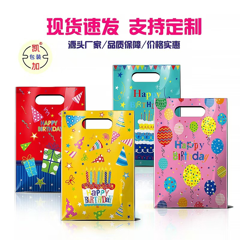 跨境生日礼物手提袋珠光膜带把手字母印花生日快乐礼物伴手礼袋