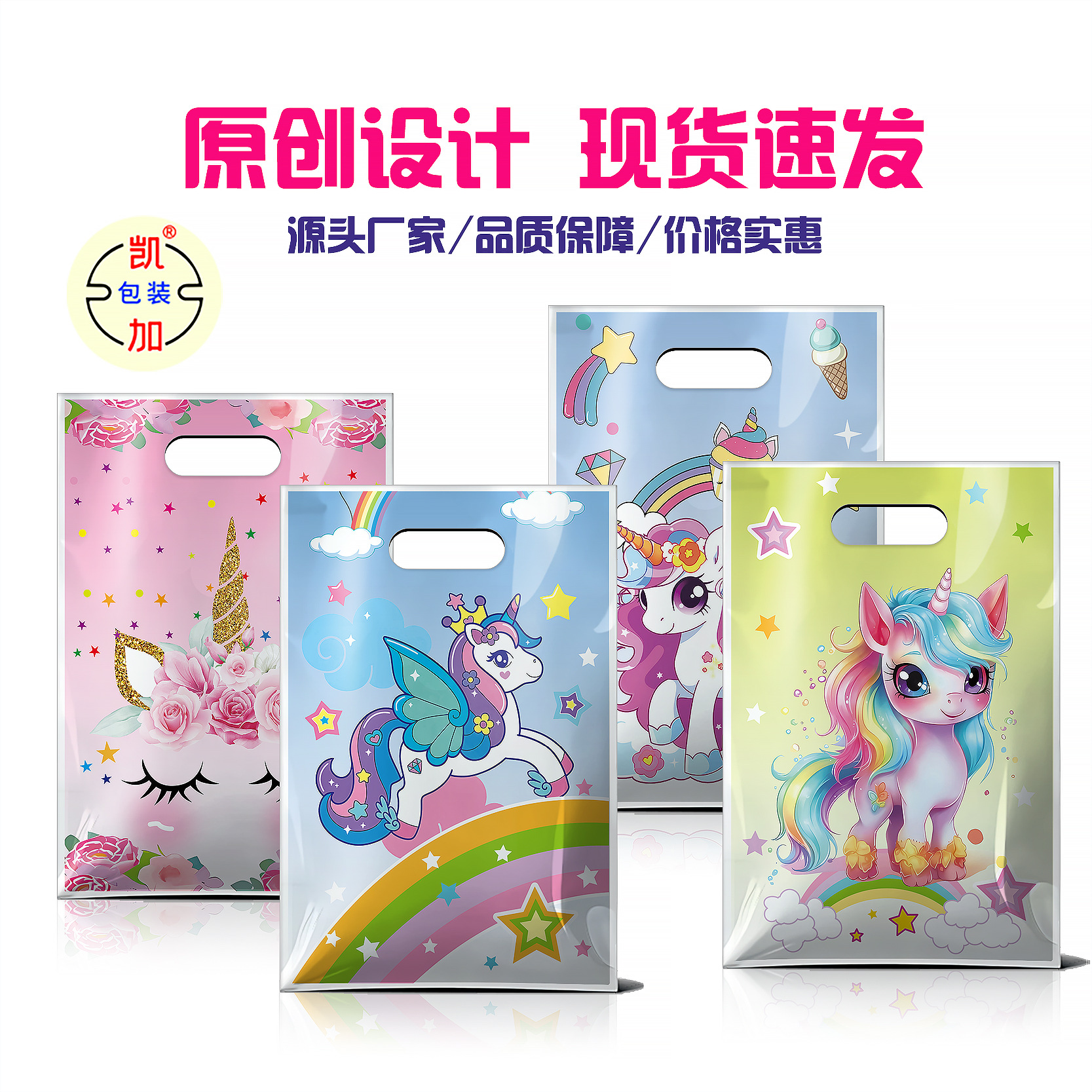 新款独角兽主题礼品袋 派对生日回礼袋糖果饼干包装袋塑料手提袋