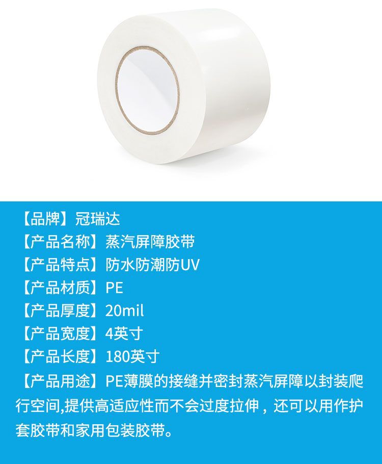 跨境蒸汽屏障接缝胶带加厚200μ白色聚乙烯防水防潮密封遮蔽胶带