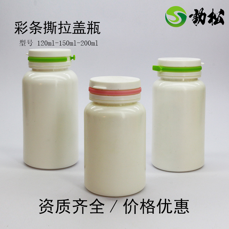 Ajs彩条撕拉盖瓶钙片维生素保健食品瓶药瓶叶黄素鱼油胶囊塑料瓶