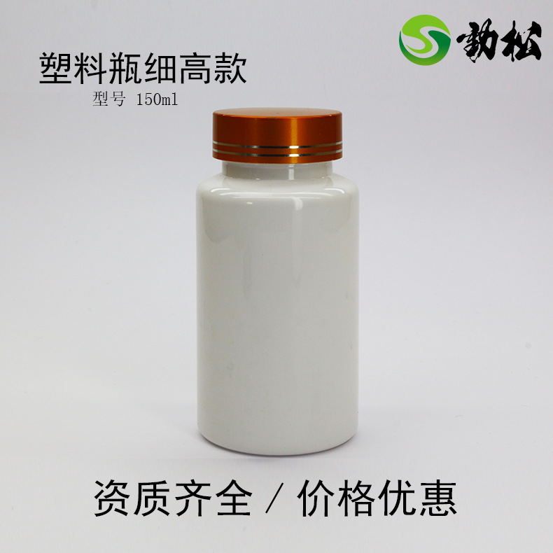 Ajs150ml细高款金银线盖医用药瓶胶囊钙片瓶子-白色保健品塑料瓶