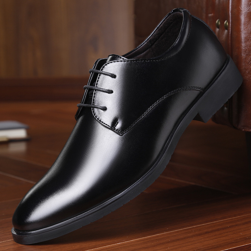 男鞋春季软皮商务男士休闲皮鞋男婚鞋正装青年鞋子男尖头系带男鞋