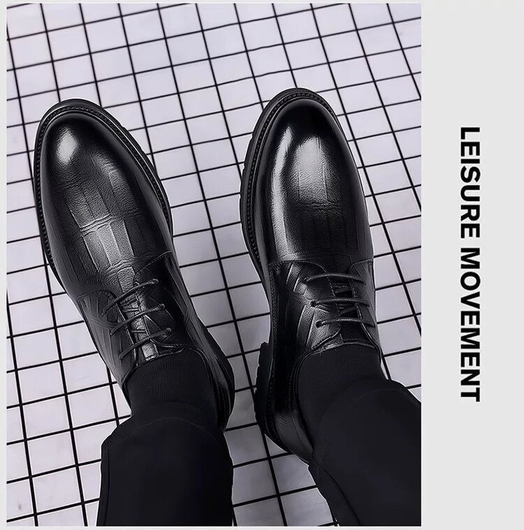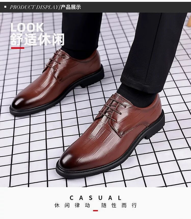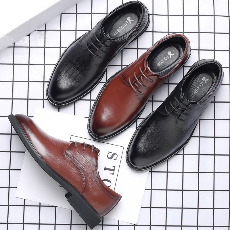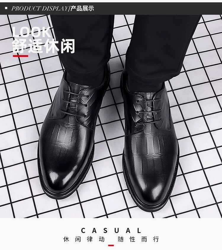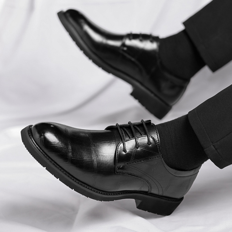 皮鞋男款四季增高黑色商务正装英伦休闲通勤风新郎婚礼鞋一件代发
