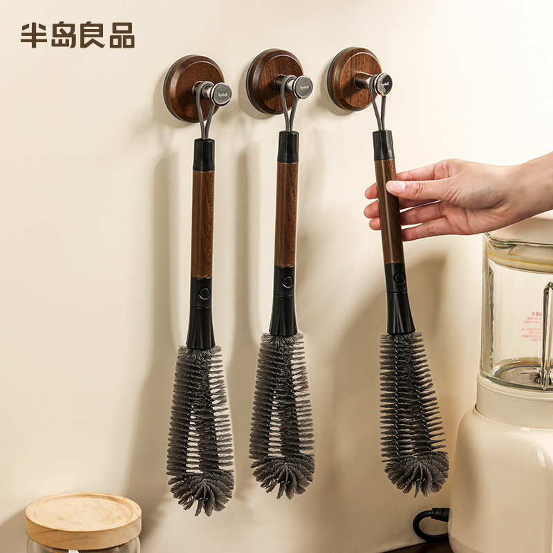 破壁机清洁刷可拆卸长柄软毛杯刷二合一胡桃木纹杯刷可弯曲奶瓶刷