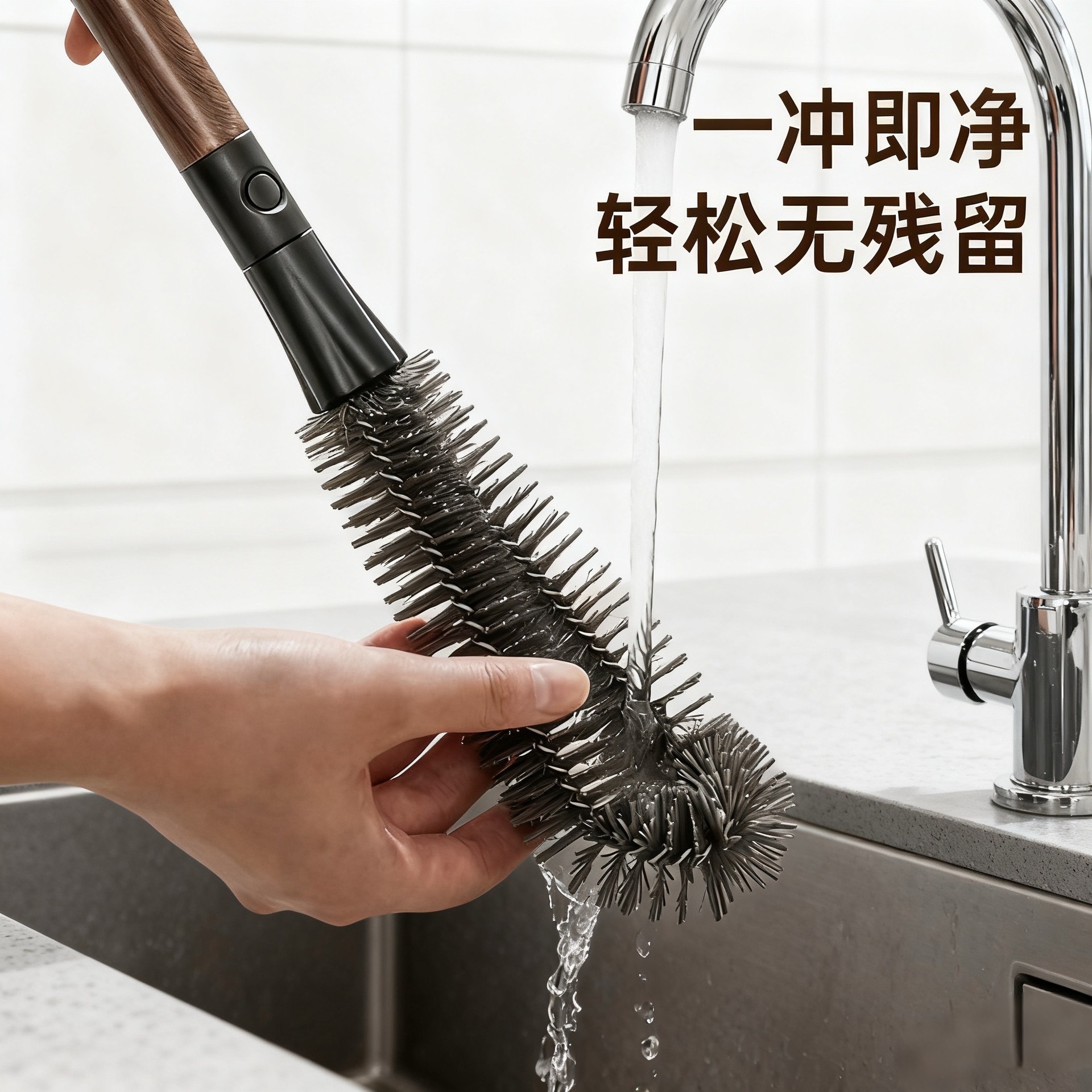 胡桃色二合一瓶口刷长柄可拆卸缝隙刷多功能软毛杯刷破壁机清洗刷